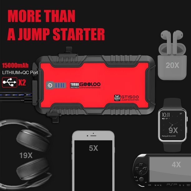 Gooloo GT1500 1500A Car Jump Starter 15000mAh Auto Battery Booster Charger With QC3.0 Power Pack