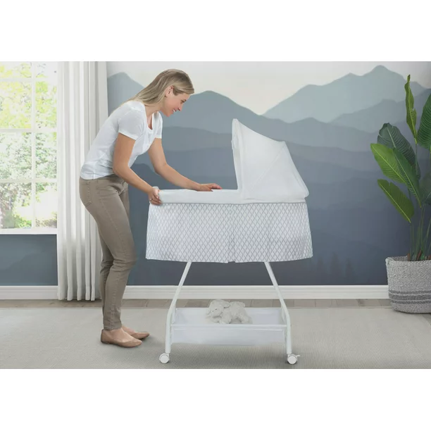 Delta Children Deluxe Soothing Dreams Bassinet With Calming And Convenient Features. Grey Windchime