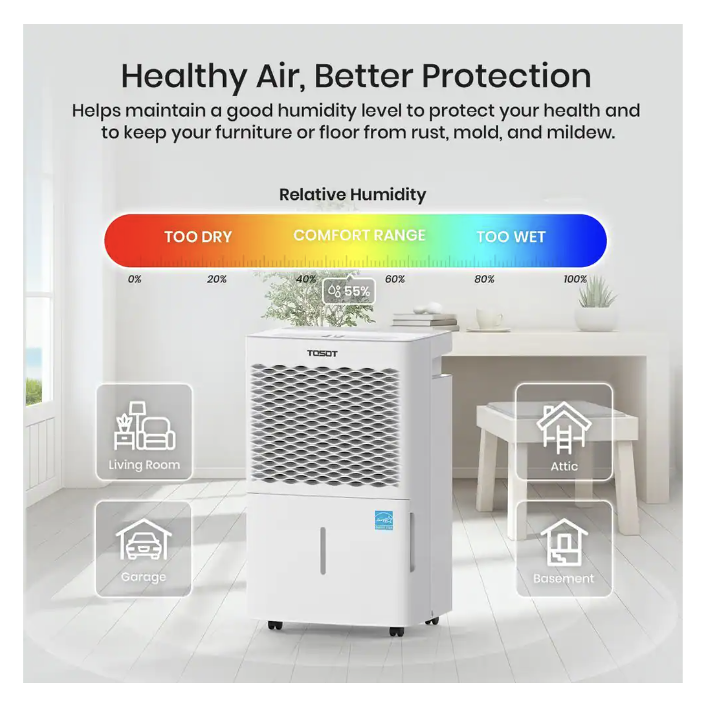 Tosot 35-Pint Capacity 3.000 sq.ft. Energy Star Dehumidifier