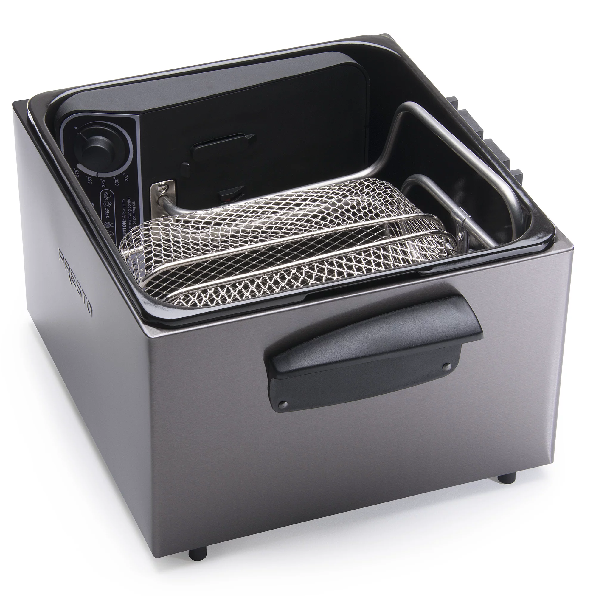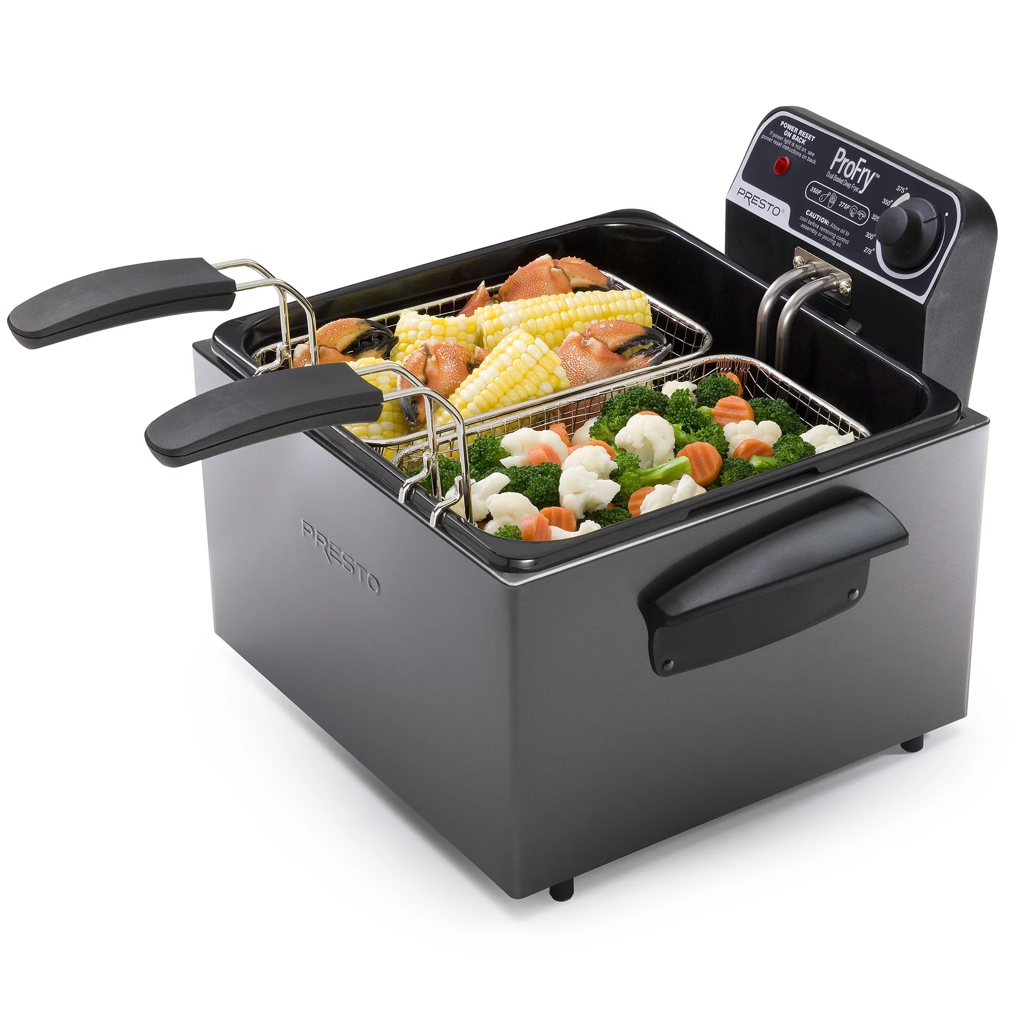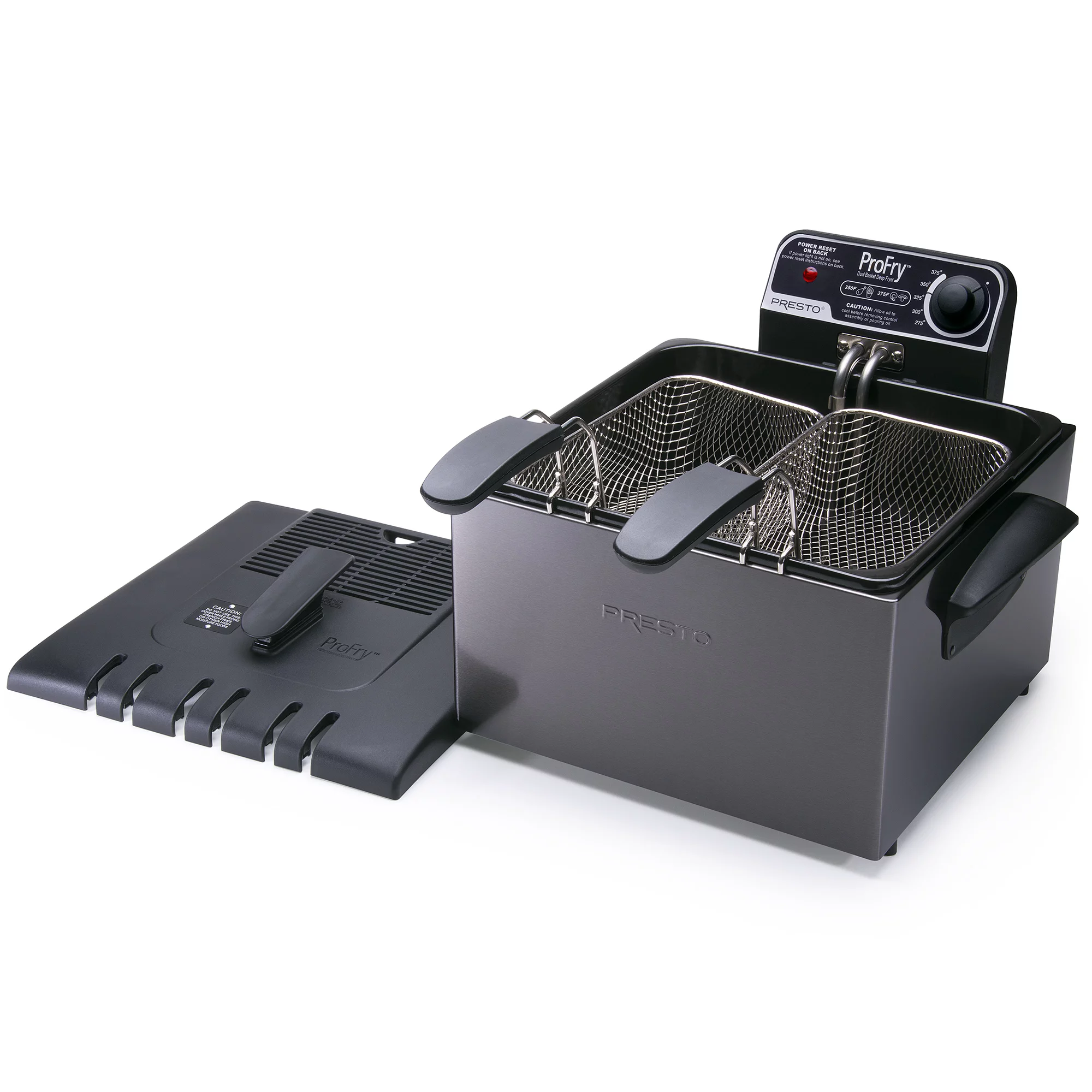 Presto 5Qt Dual Basket Pro Fry Immersion Element Black Deep Fryer 05489