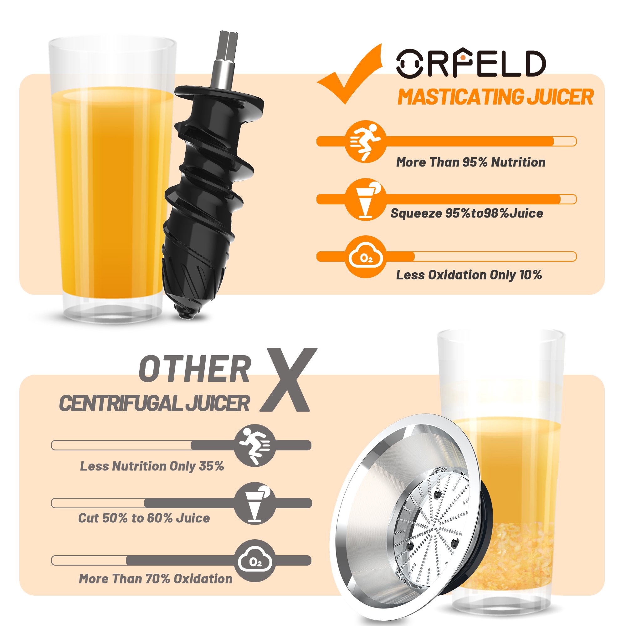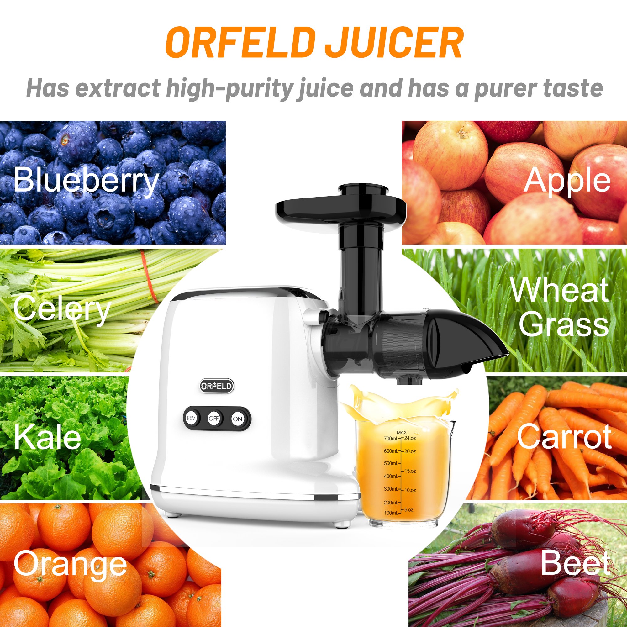 Orfeld Cold Press Juicer. Masticating Juicer. Easy Cleaning & Quiet Motor. White