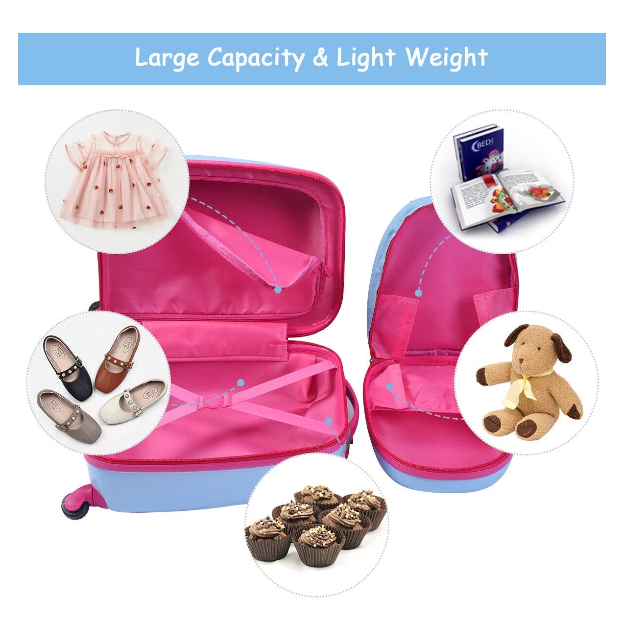Costway 2Pc 12” 16” Kids Luggage Set Suitcase Backpack School Travel Trolley. Light Blue