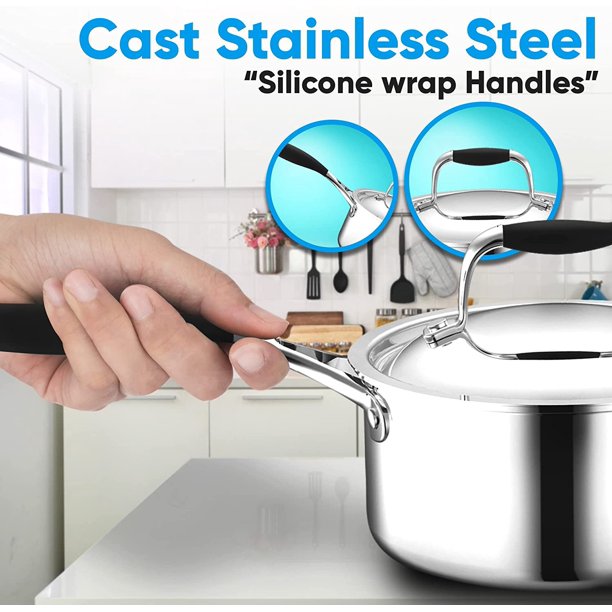 NutriChef 1.5-quart Saucepan with Lid. PFOA/PFOS Free Stainless Steel Stain-Resistant Sauce Pot Kitchen Cookware