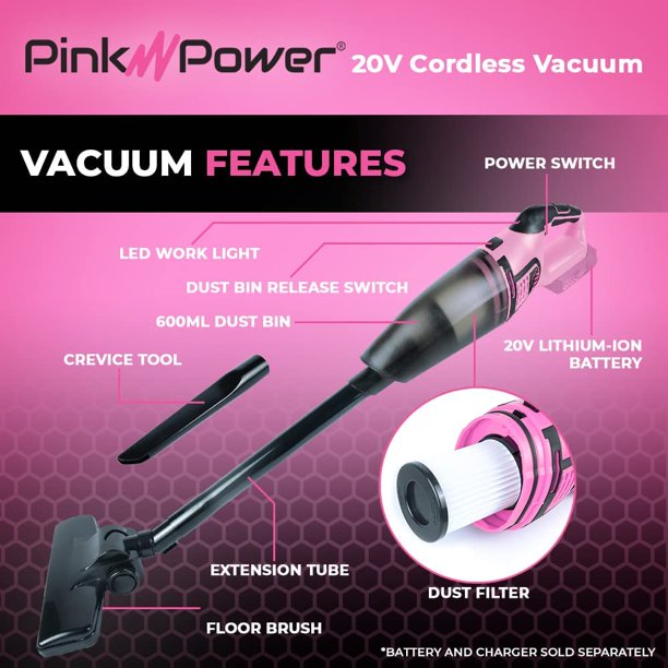 Pink Power Lightweight Cordless Vacuum Cleaner - Bare Tool Only