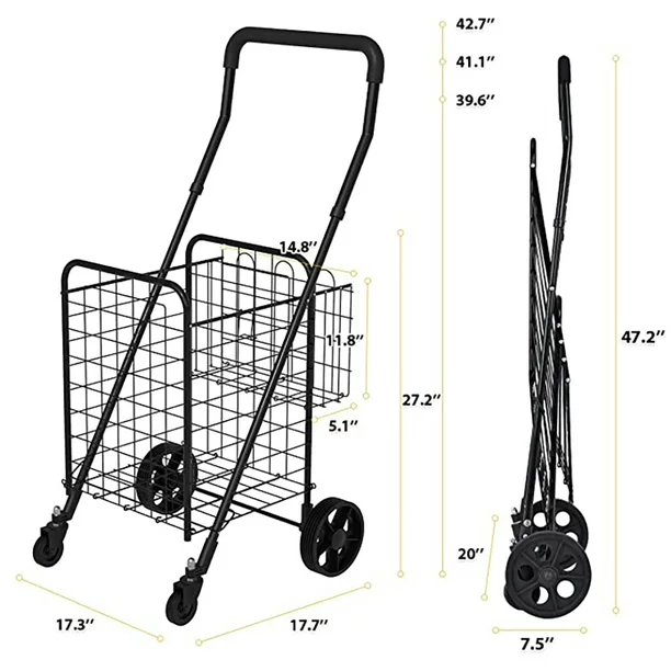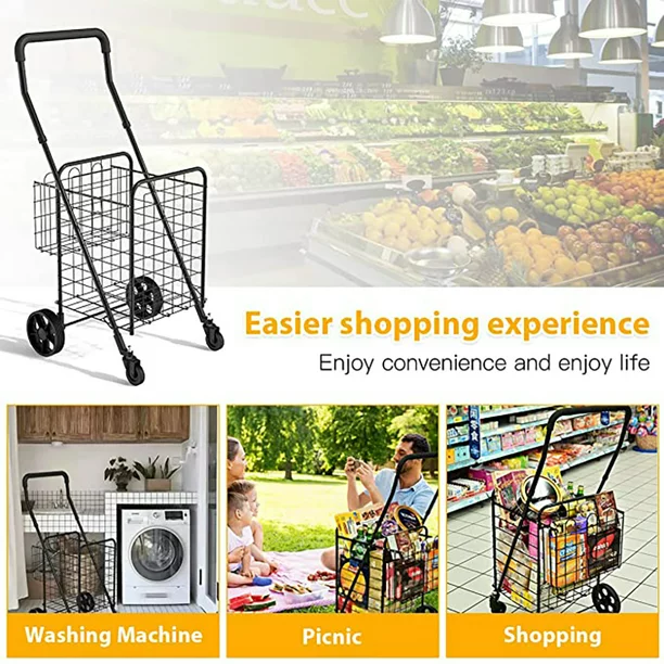 Siffler Shopping Cart with 360° Rolling Swivel Wheels. Medium-Black