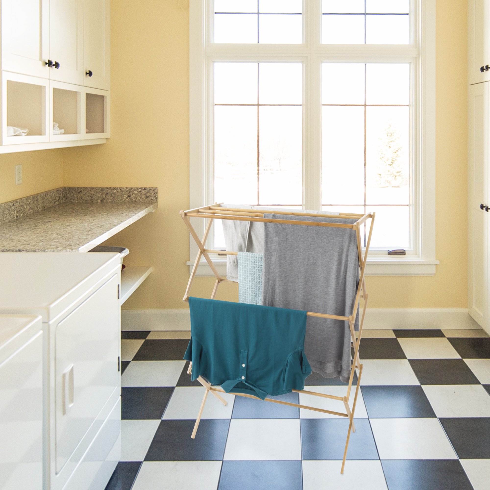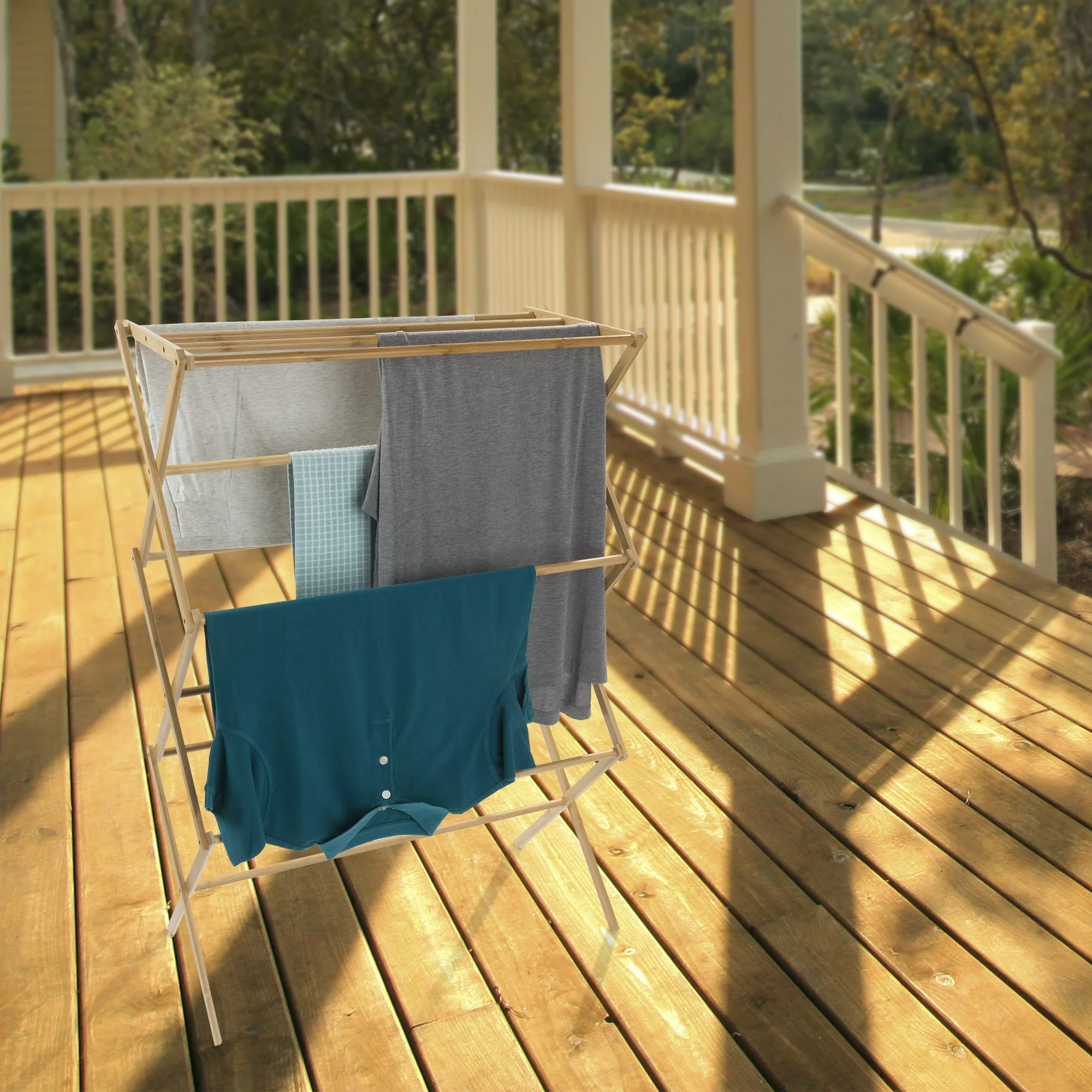 Lavish Home Portable Bamboo Clothes Drying Rack - Collapsible and Compact for Indoor/Outdoor Use