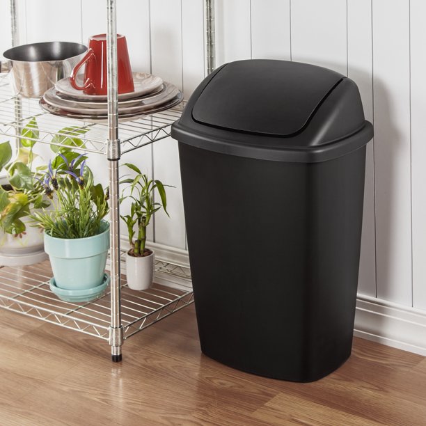 Sterilite 7.5 gal. Plastic Swing Top Office Trash Can. 6 Pack. Black