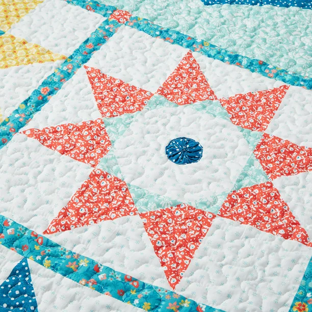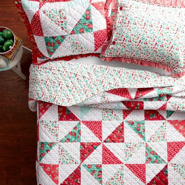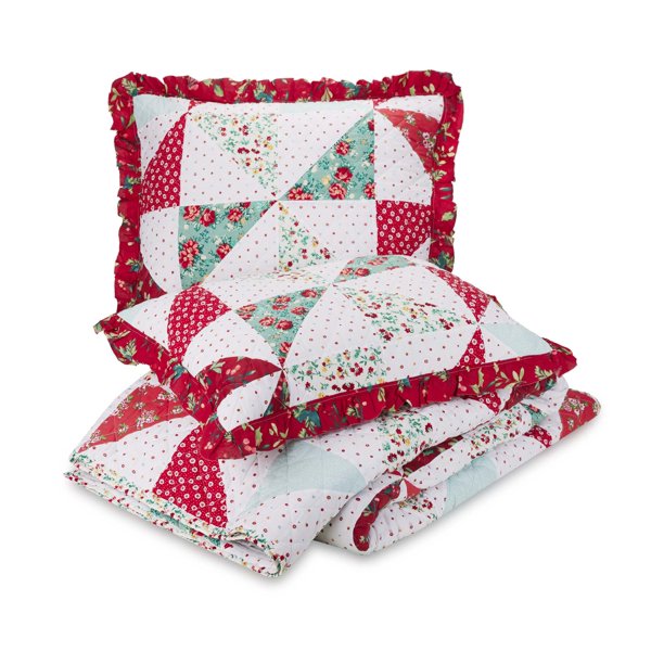 The Pioneer Woman Holiday Multi Cotton Pinwheel 3-Piece Quilt Set. Full/Queen