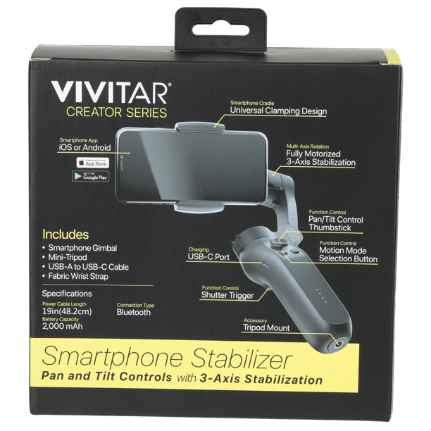 Vivitar Smartphone Stabilizer. 3-Axis Foldable Pocket Gimbal. Stable Perfect Selfies. Smooth Video. Compatible with iPhone and Android