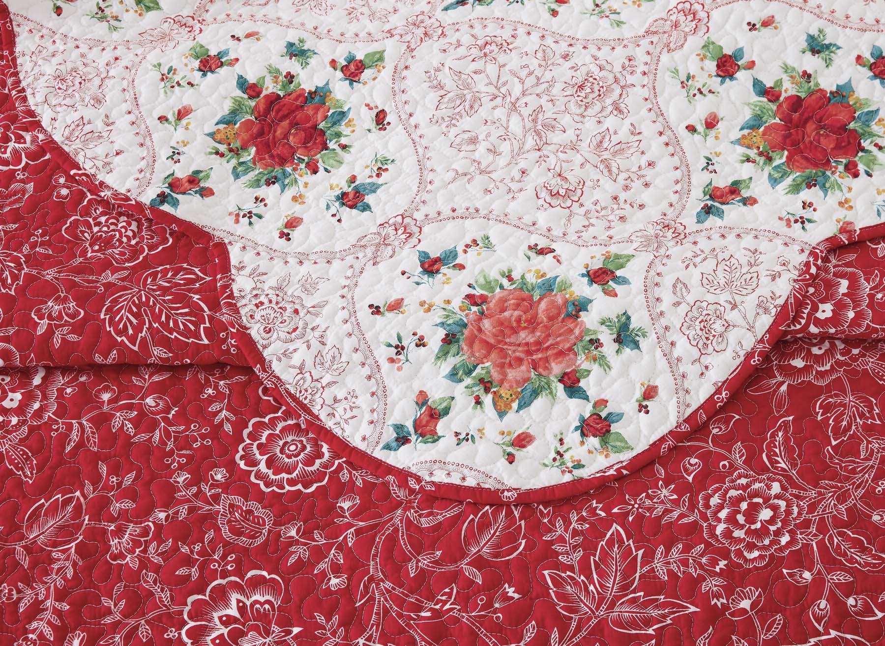 The Pioneer Woman Holiday Multi Cotton Cheerful Toile 3-Piece Quilt Set. Full/Queen