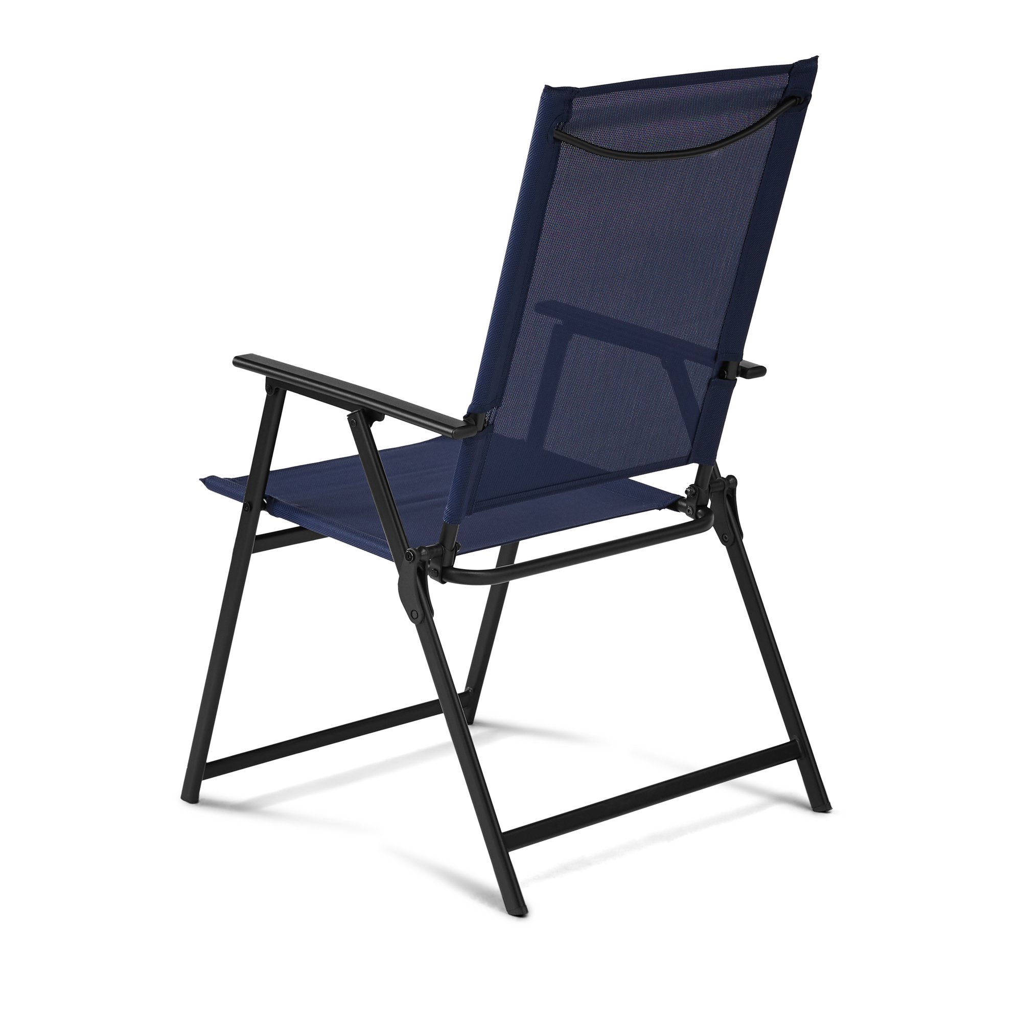 Mainstays Greyson Square Set of 2 Outdoor Patio Steel Sling Folding Chair. Navy