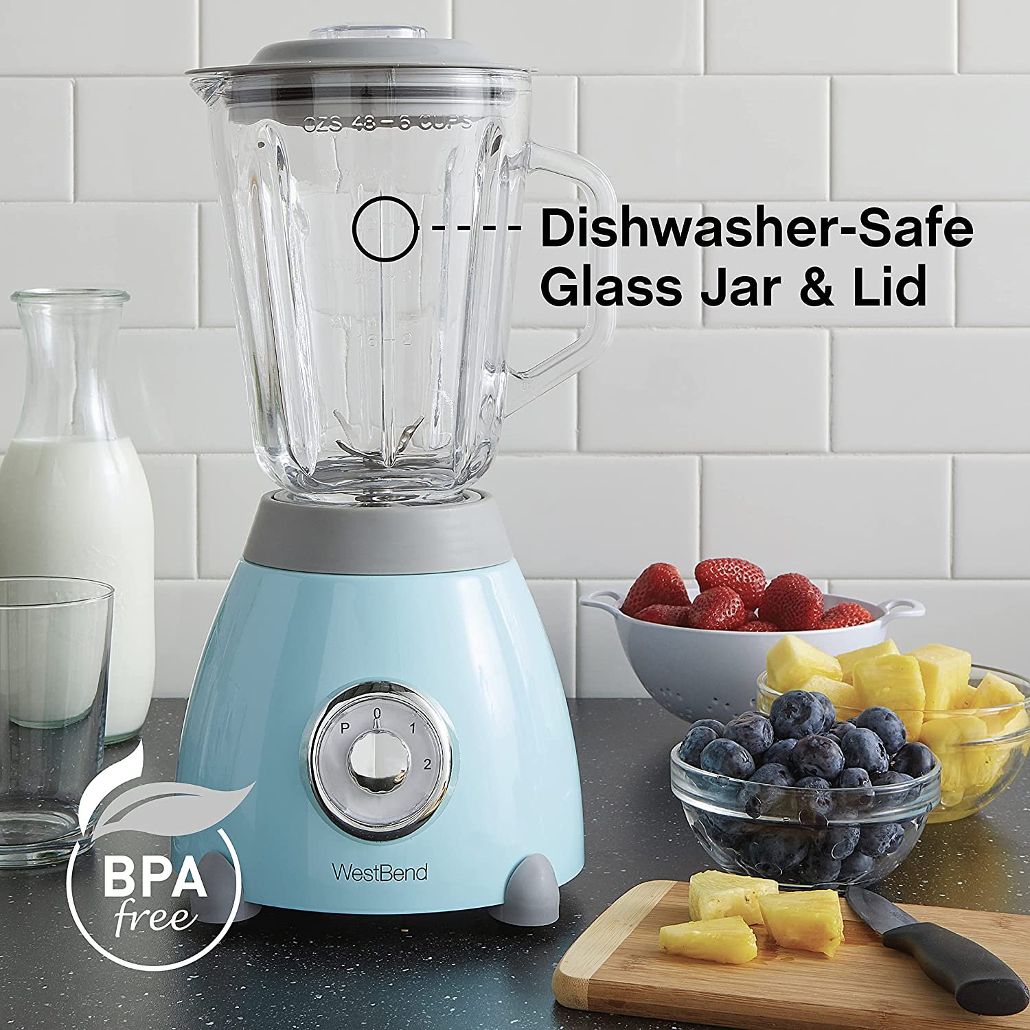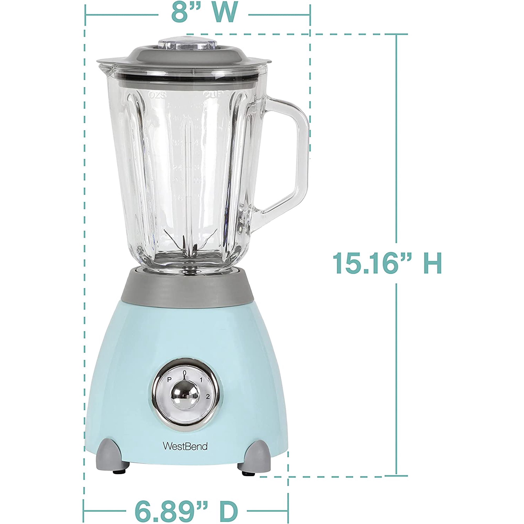 West Bend Retro Style Blender with BPA-Free 48 oz. Glass Jar. Blue