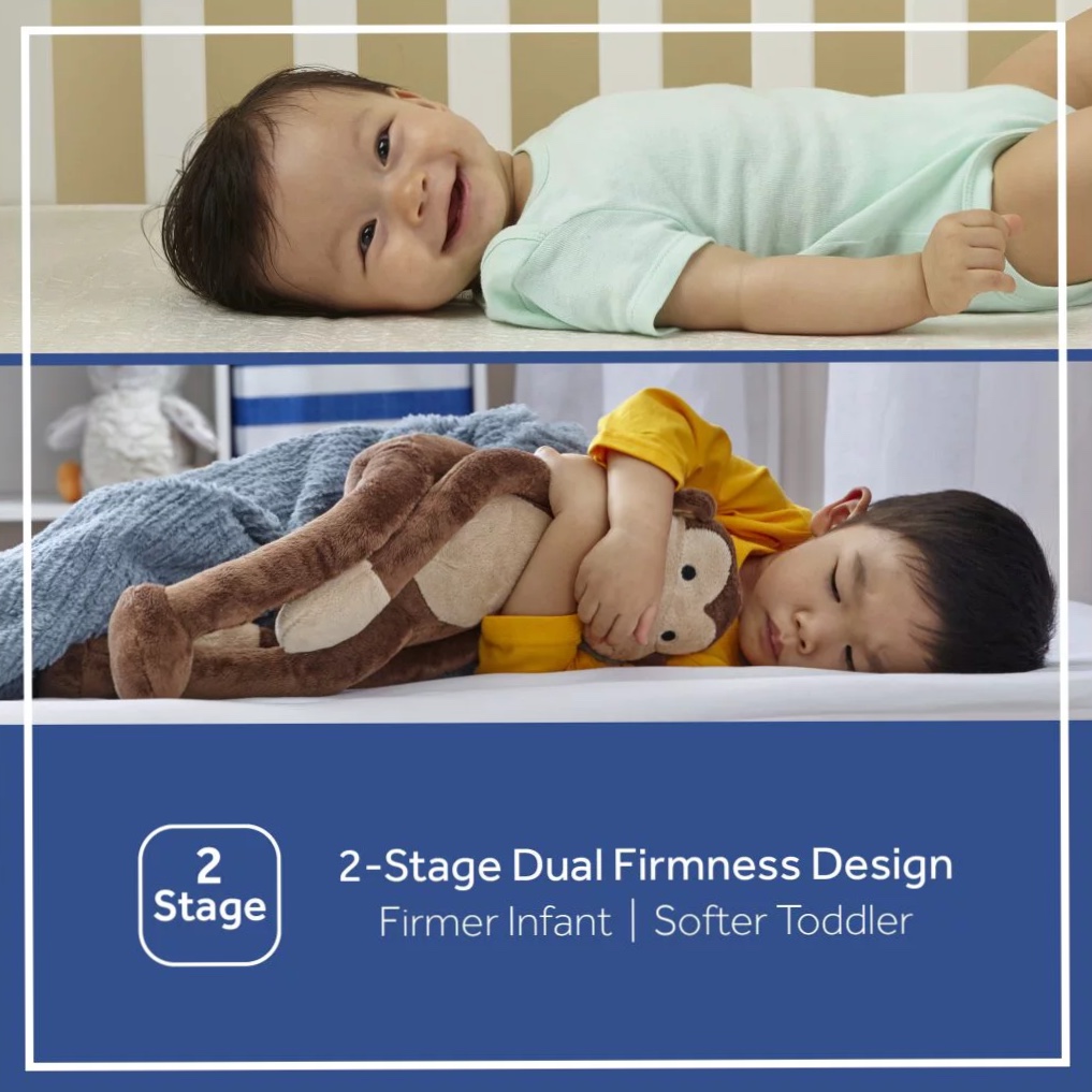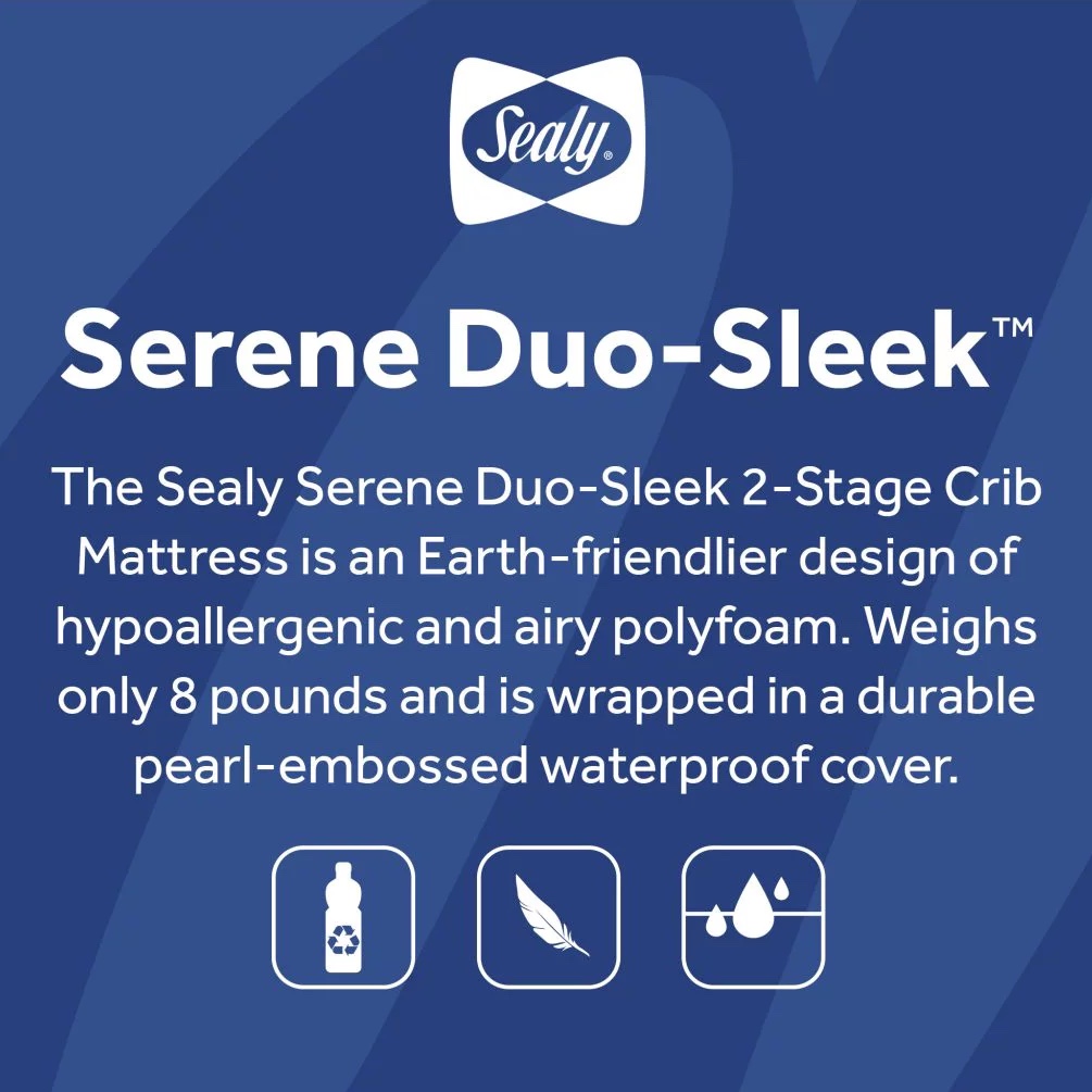 Sealy Serene Duo-Sleek 2-Stage Foam Crib and Toddler Mattress. 52″ x 28″