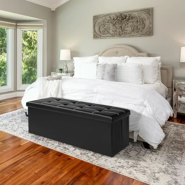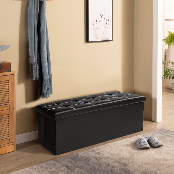 Lusimo 43 Inches Folding Storage Ottoman Bench. Black