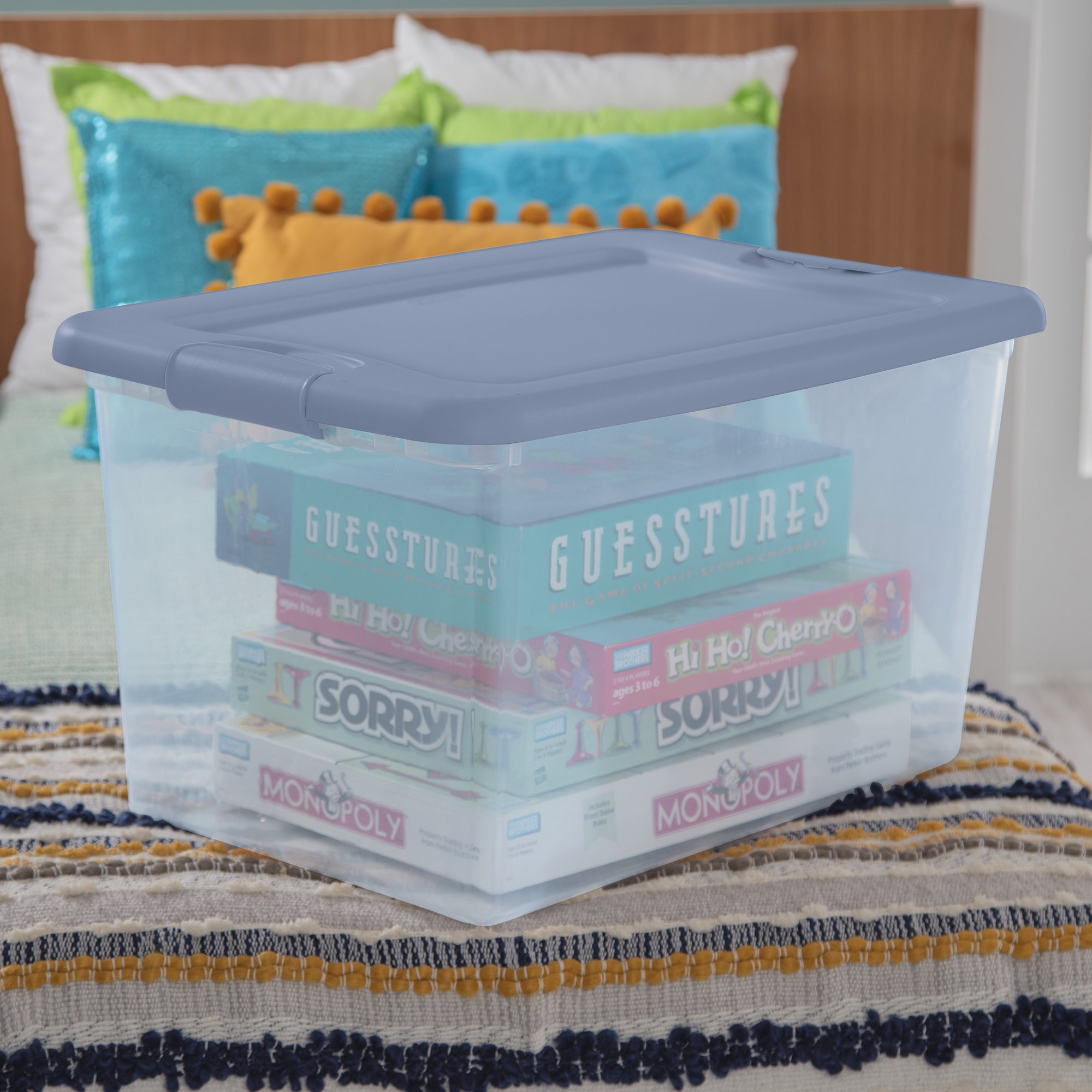 Sterilite 64 Qt. Latching Box Plastic. Blue Tint. Set of 6