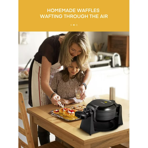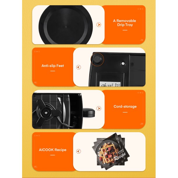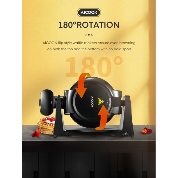 Aicook Belgian Waffle Maker 180° Flip Double Baking. 1400W Nonstick. Black