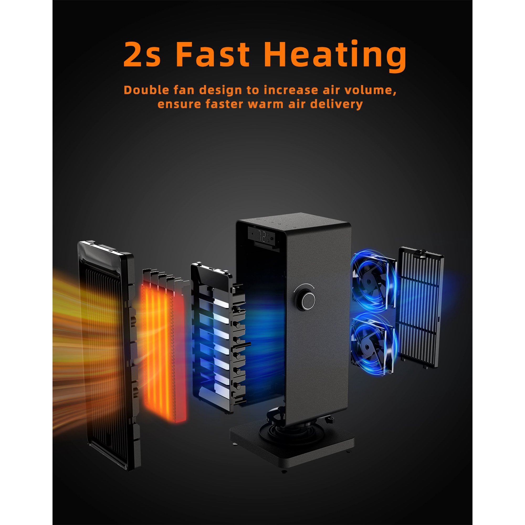 Alrocket 1500W Tower Heater with Oscillation ECO thermostat for Indoor Bedroom Office Use