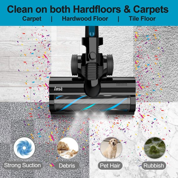 Inse Cordless Vacuum Cleaner Lightweight Powerful Suction Stick Vacuum. 1.2 L Large Dust Cup Handheld Vac