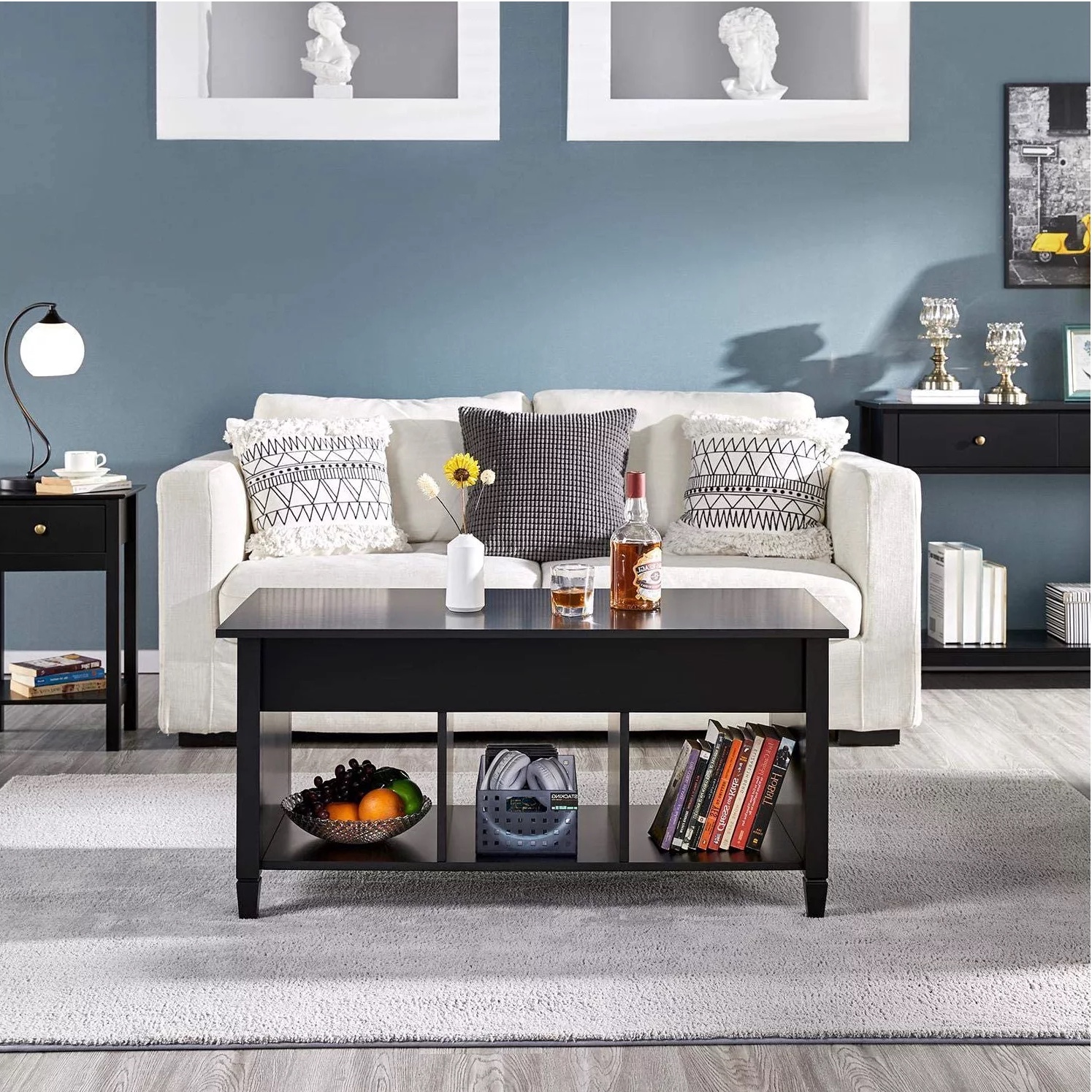 Zimtown Lift Top Coffee Table with Hidden Compartment Wooden Modern Multifunctional Coffee Table Furniture. Black