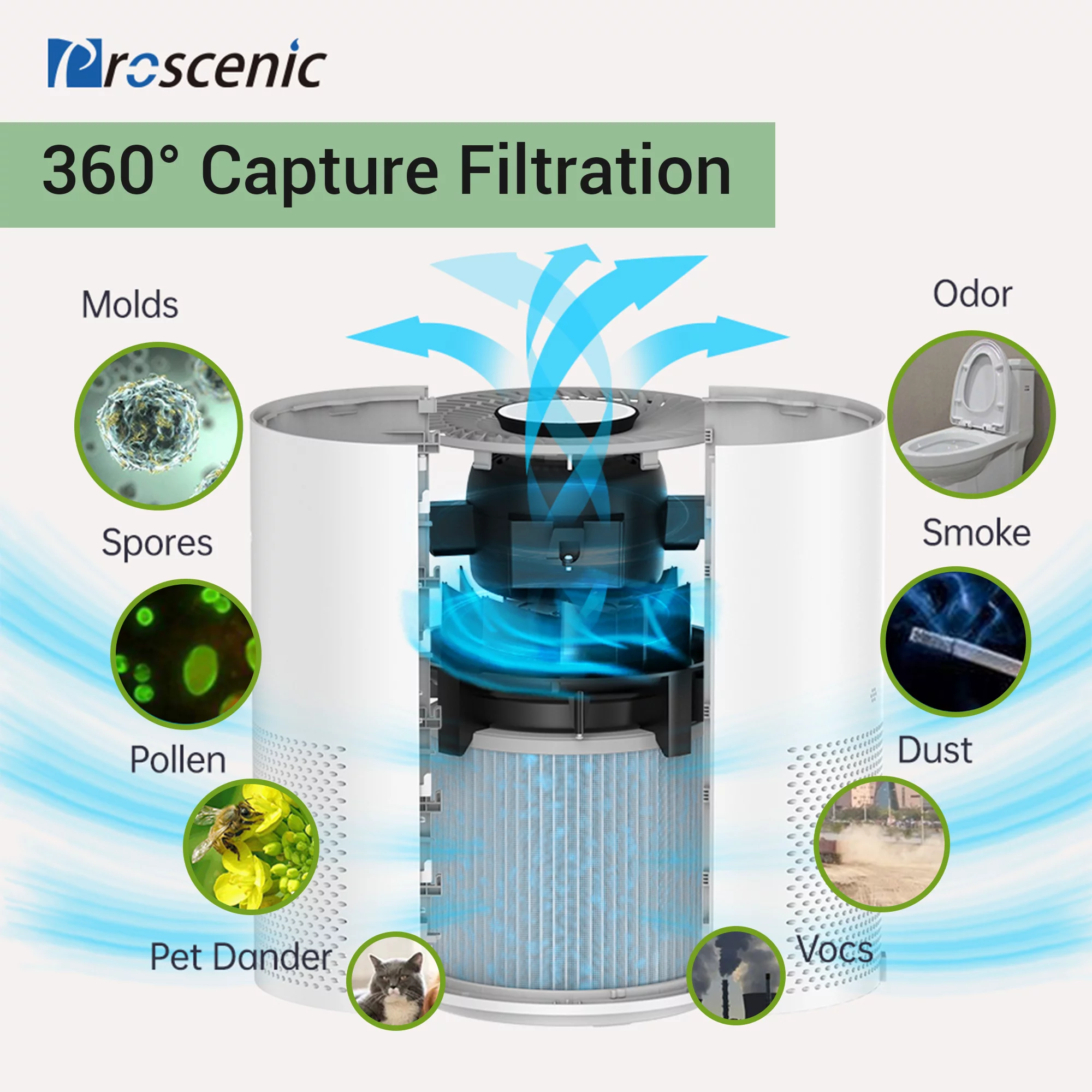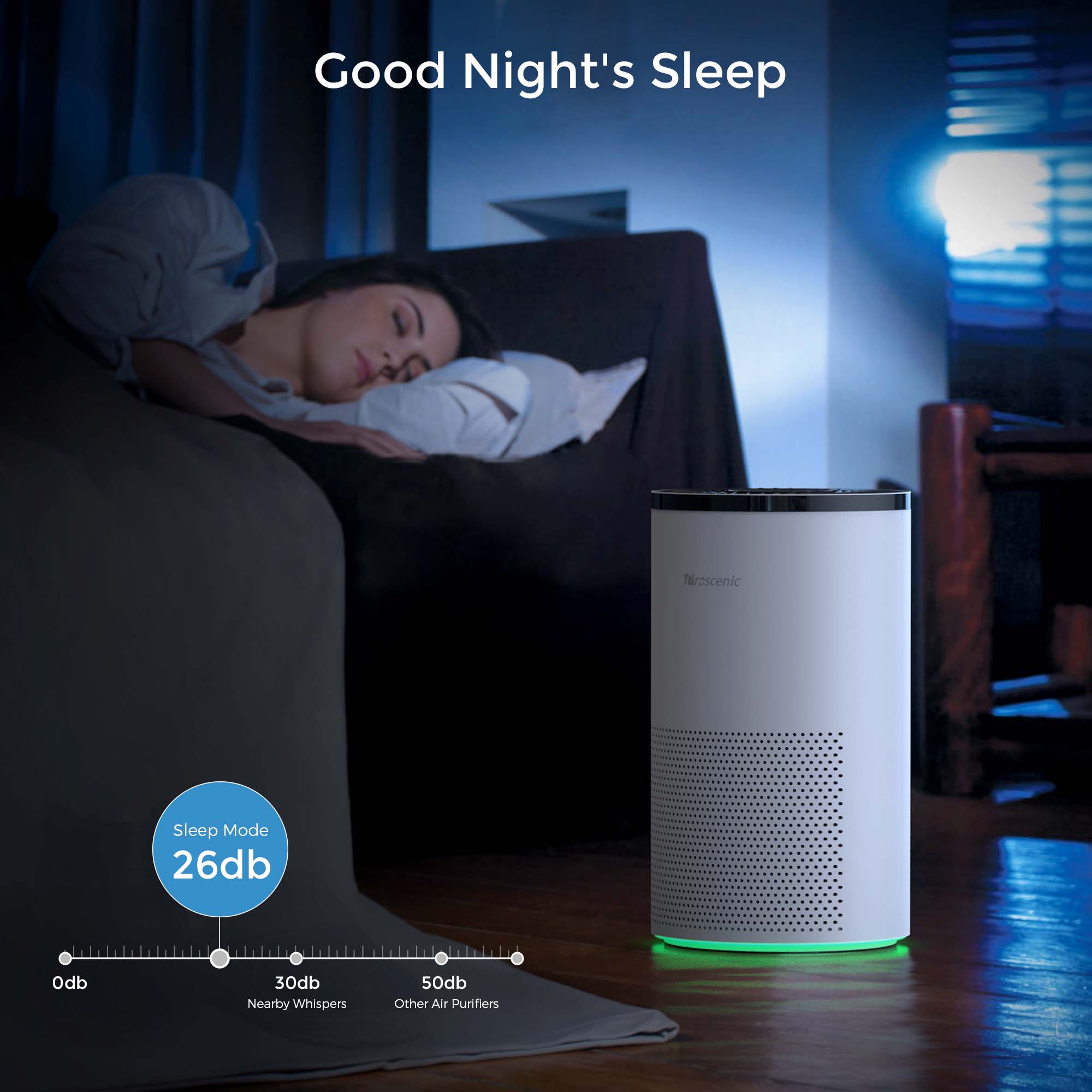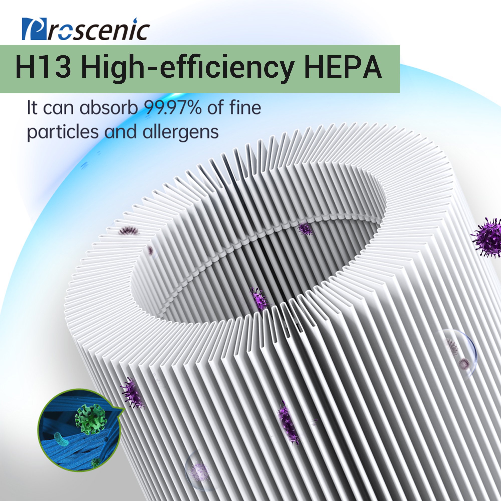 Proscenic Air Purifier. H13 HEPA Filters 4-Stage Filtration. WiFi Air Cleaner with Sleep Mode. Speed Control & Timer