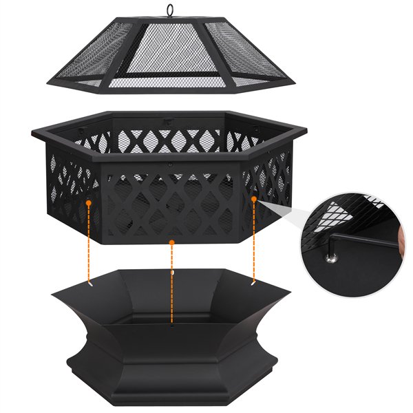 SmileMart 24-in Metal Fire Pit Garden Stove Brazier for Outdoor Patio Backyard Camping Garden