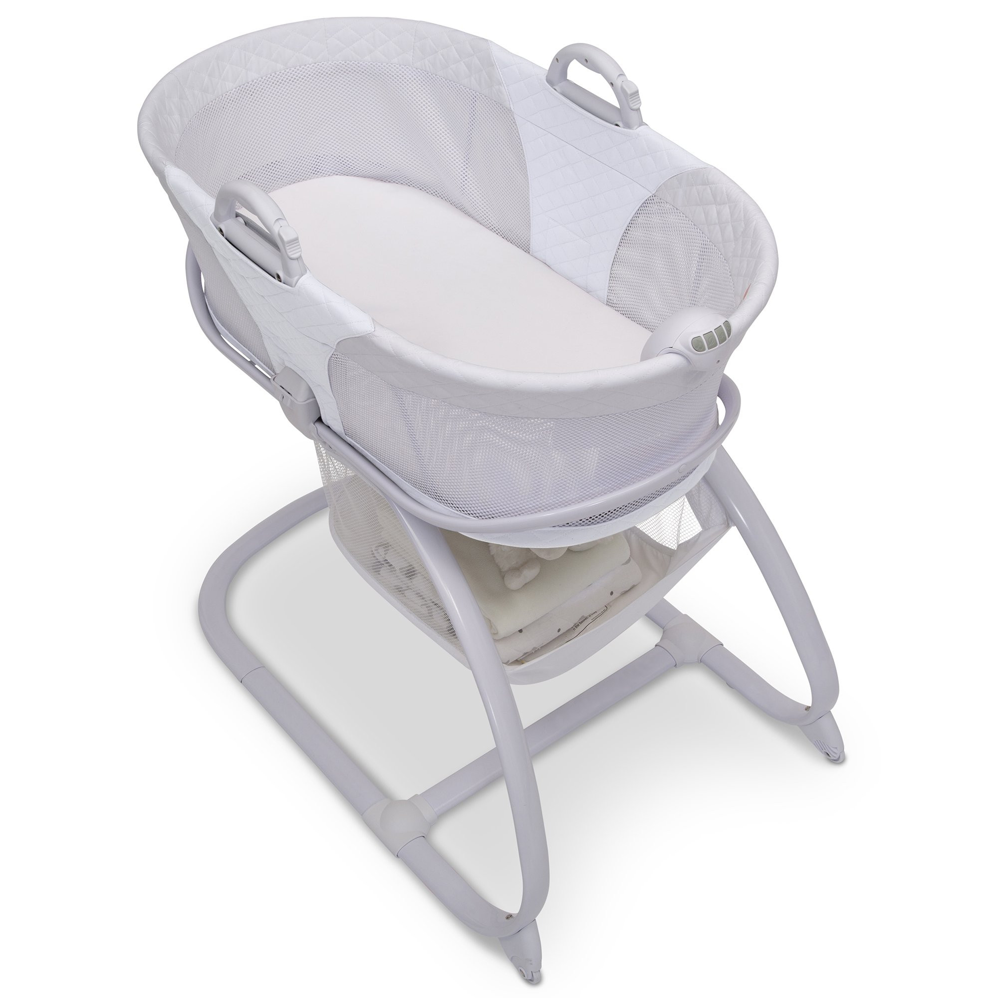 Little Folks by Delta Children 2-in-1 Moses Basket Bedside Bassinet Sleeper. Portable Baby Crib w/ Wheels & Removable Moses Basket. White