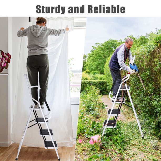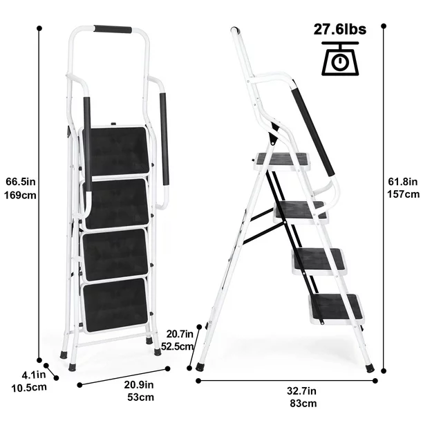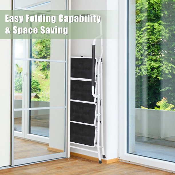NSdirect Folding 4 Step Home Improvement Ladder. Portable Step Stool with Safety Handrails Non-Slip Wide Pedal