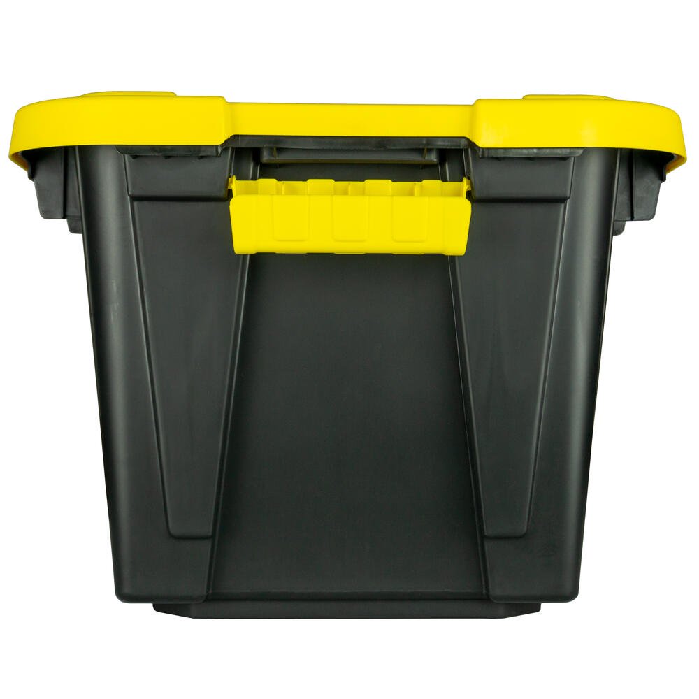 Juggernaut Storage 12 Gal. Plastic Storage Tote. Black Bottom and Yellow Snap Lid (6 pk.)
