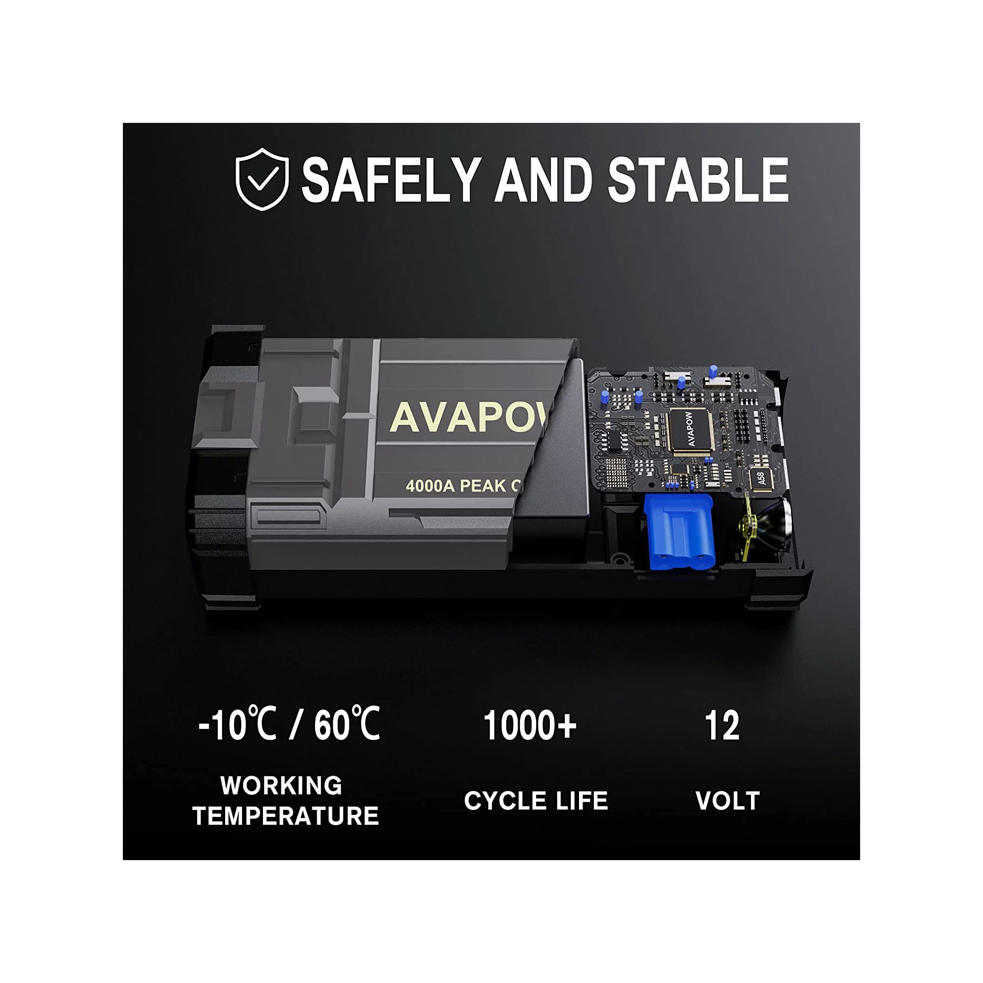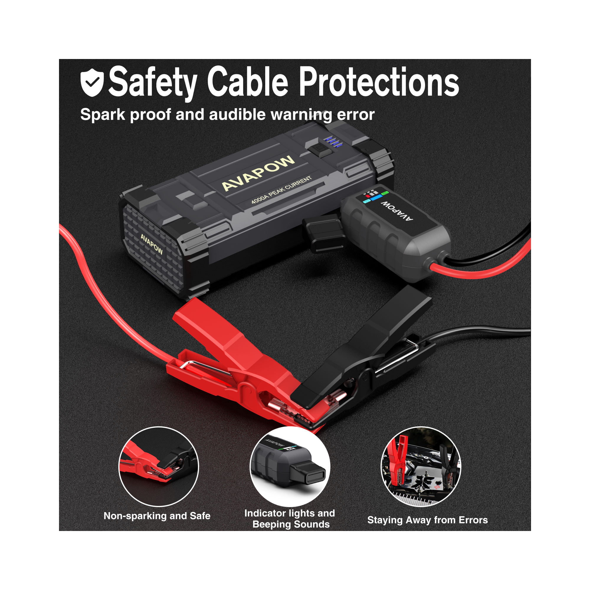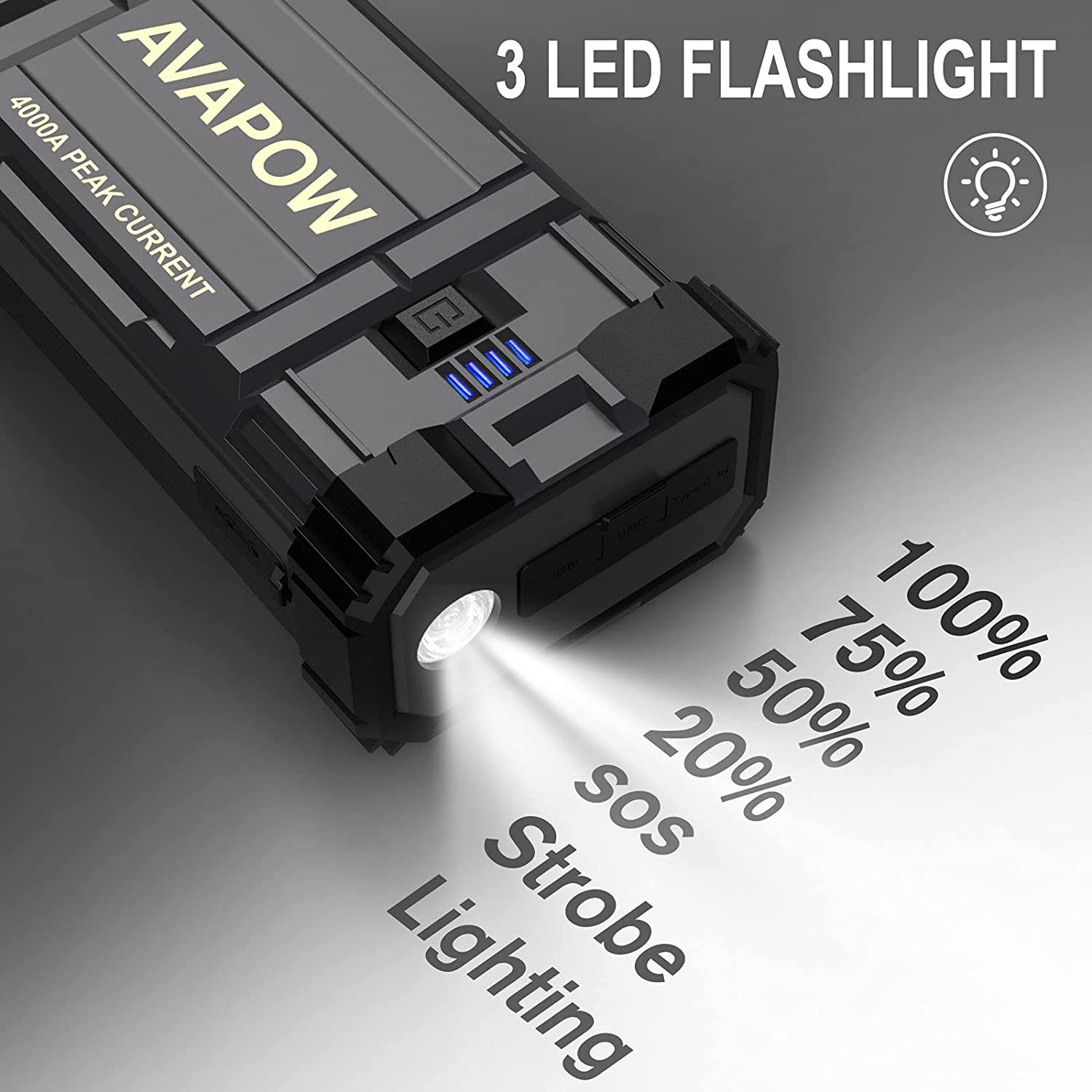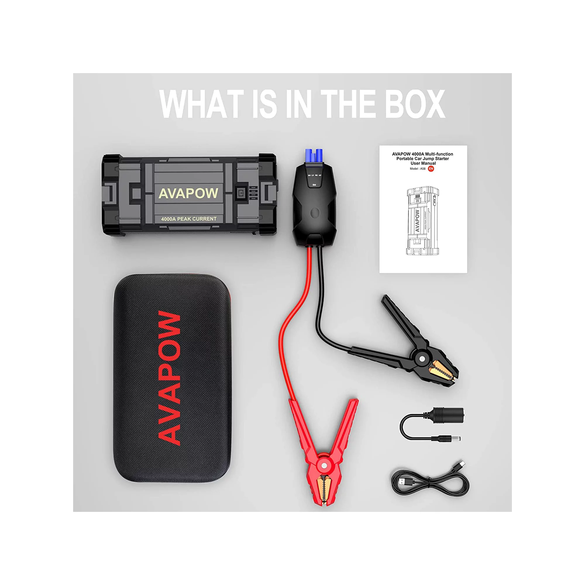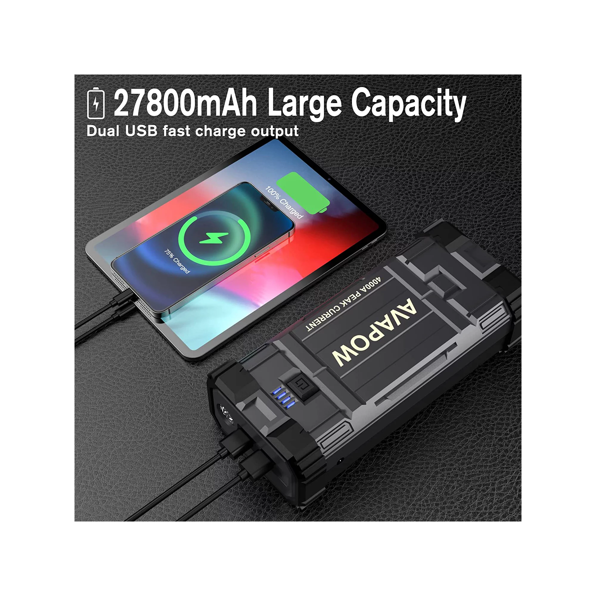 Avapow 4000A Car Battery Jump Starter. 27800 mAh Jump Box for All Gas or Up to 10L Diesel.12V Auto Battery Booster