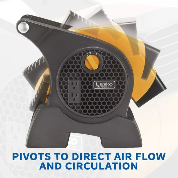 Lasko Pro Performance High-Velocity Utility Fan With Integrated Power Outlets