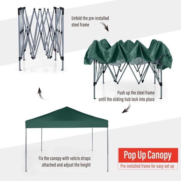 Sophia & William 10′ x 10′ Outdoor Gazebo Instant Pop Up Canopy Tent With Wheeled Bag - Green