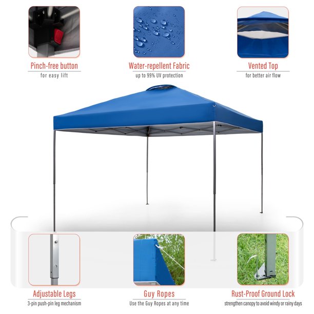 Sophia & William 10′ x 10′ Outdoor Gazebo Instant Pop Up Canopy Tent with Wheeled Bag - Blue