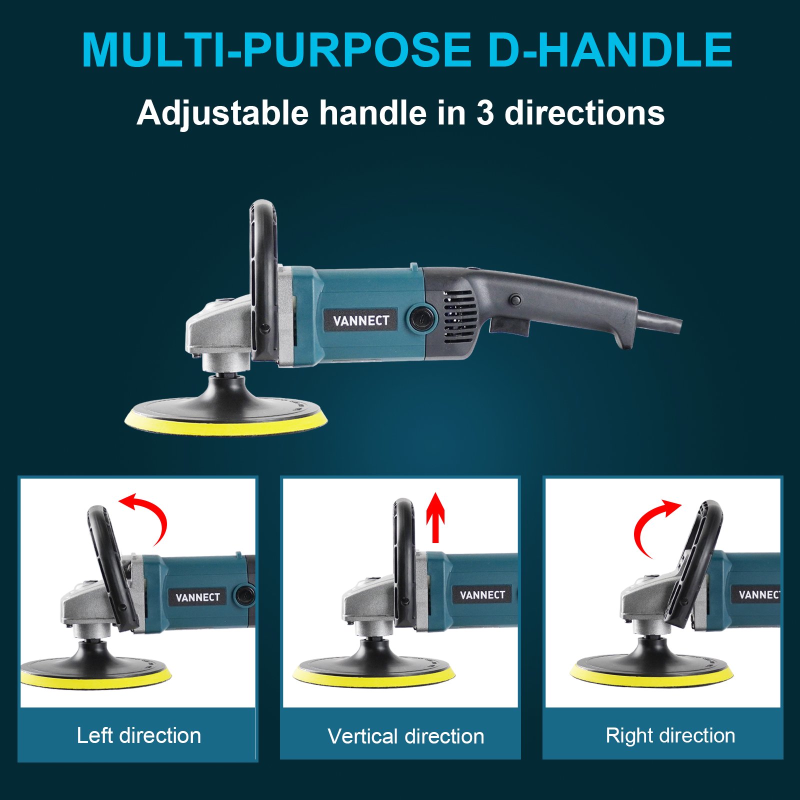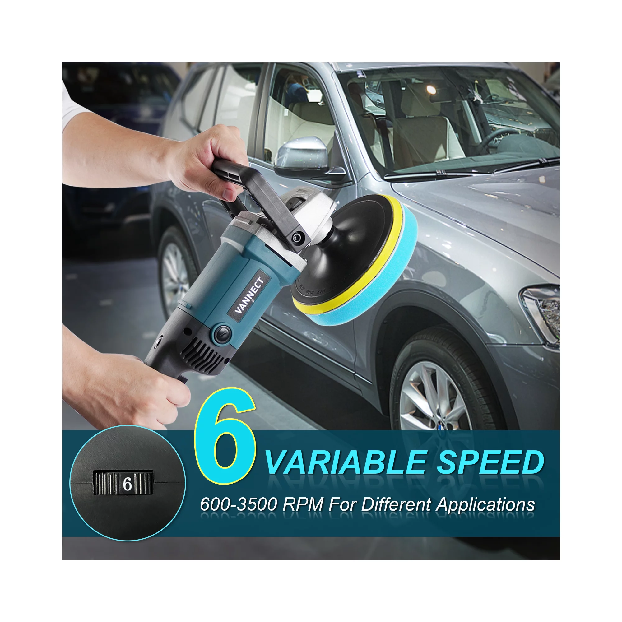 Vannect 1200W 7-Inch Buffer Polisher with 6 Variable Speed. 5 Foam Pads. Detachable Handle and Safety Lock