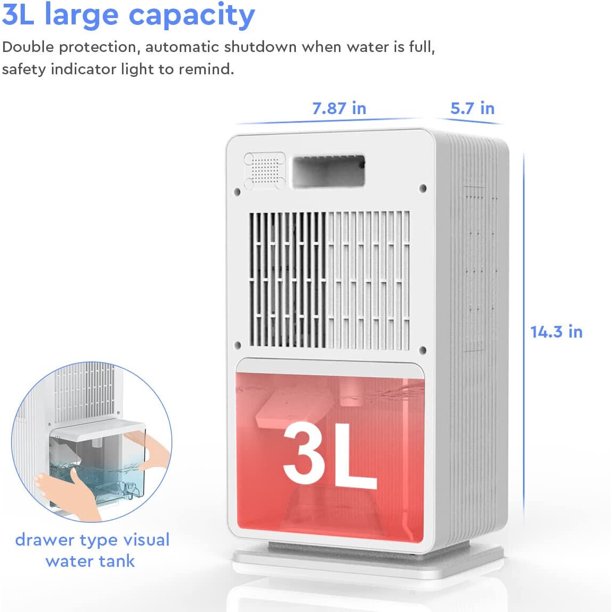 Tagital Household Dehumidifier. 102oz(3000ml) Large Water Tank Portable Quiet Dehumidifier