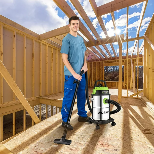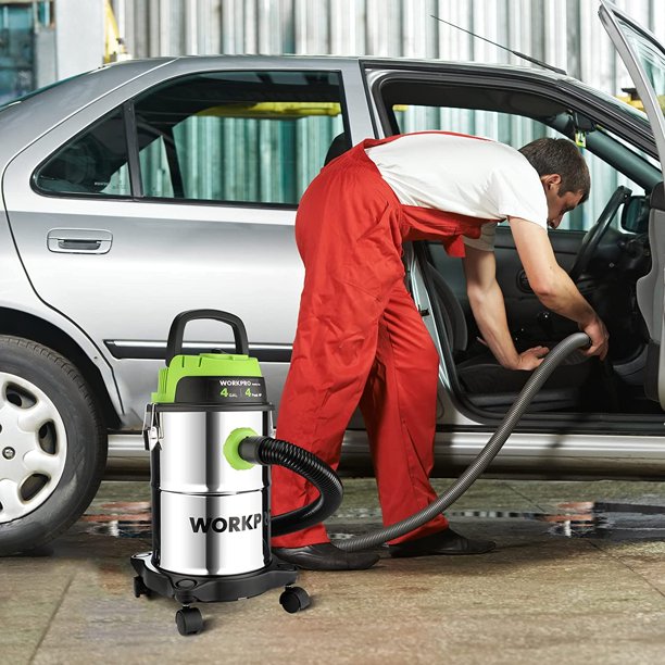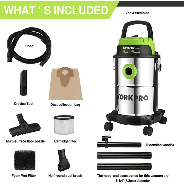 Workpro 4 Gallon Wet/Dry Vacuum. 4 Peak HP Shop Vac Cleaner With HEPA Filter. Hose And Accessories
