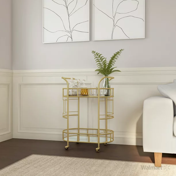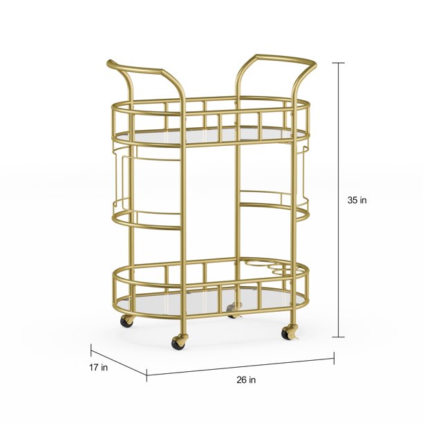Better Homes & Gardens Gold Metal And Glass Fitzgerald Serving Bar Cart