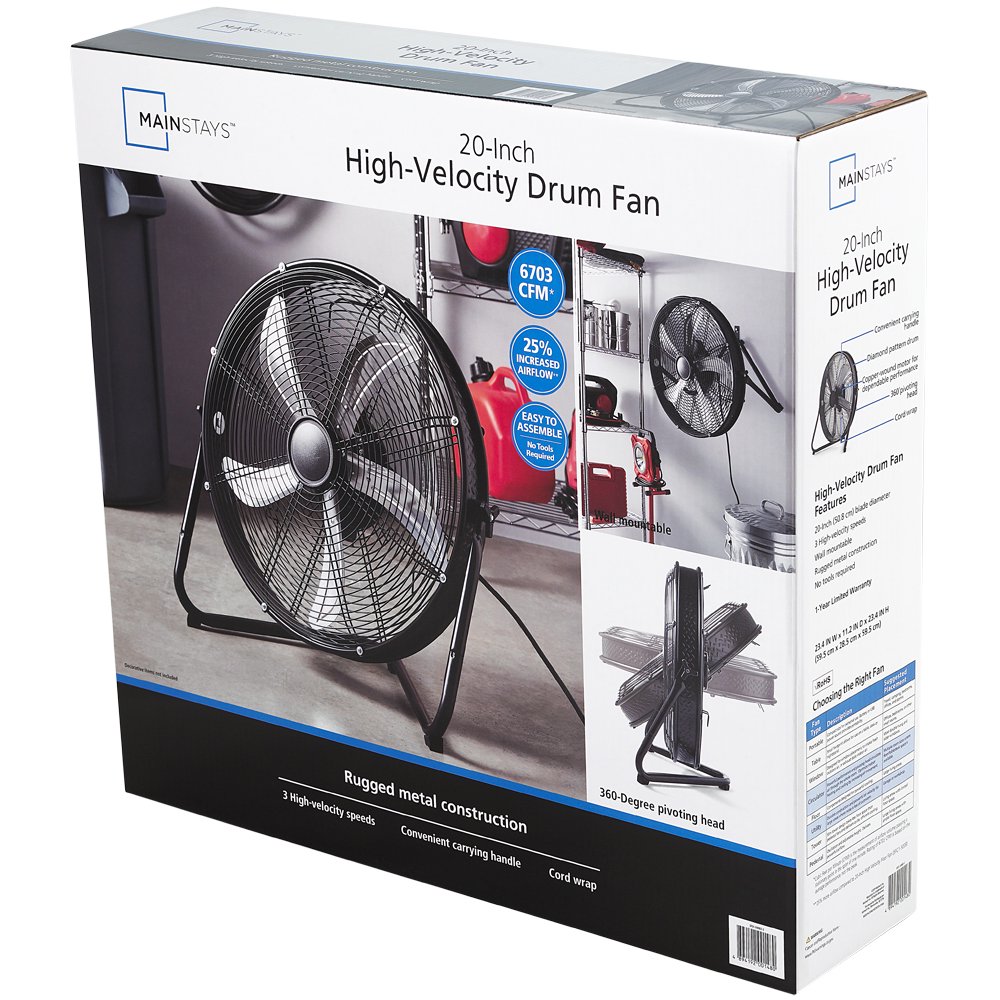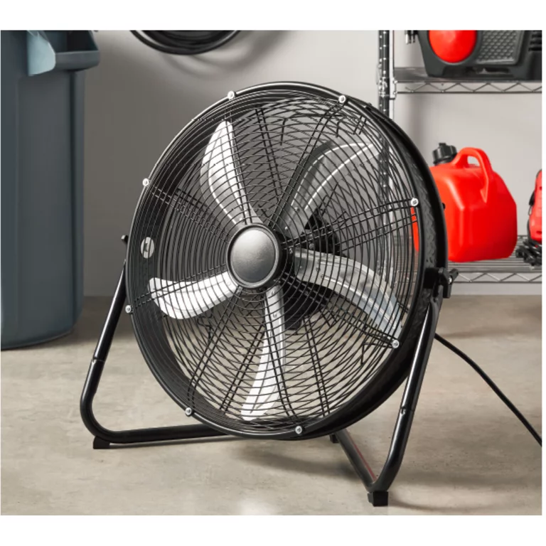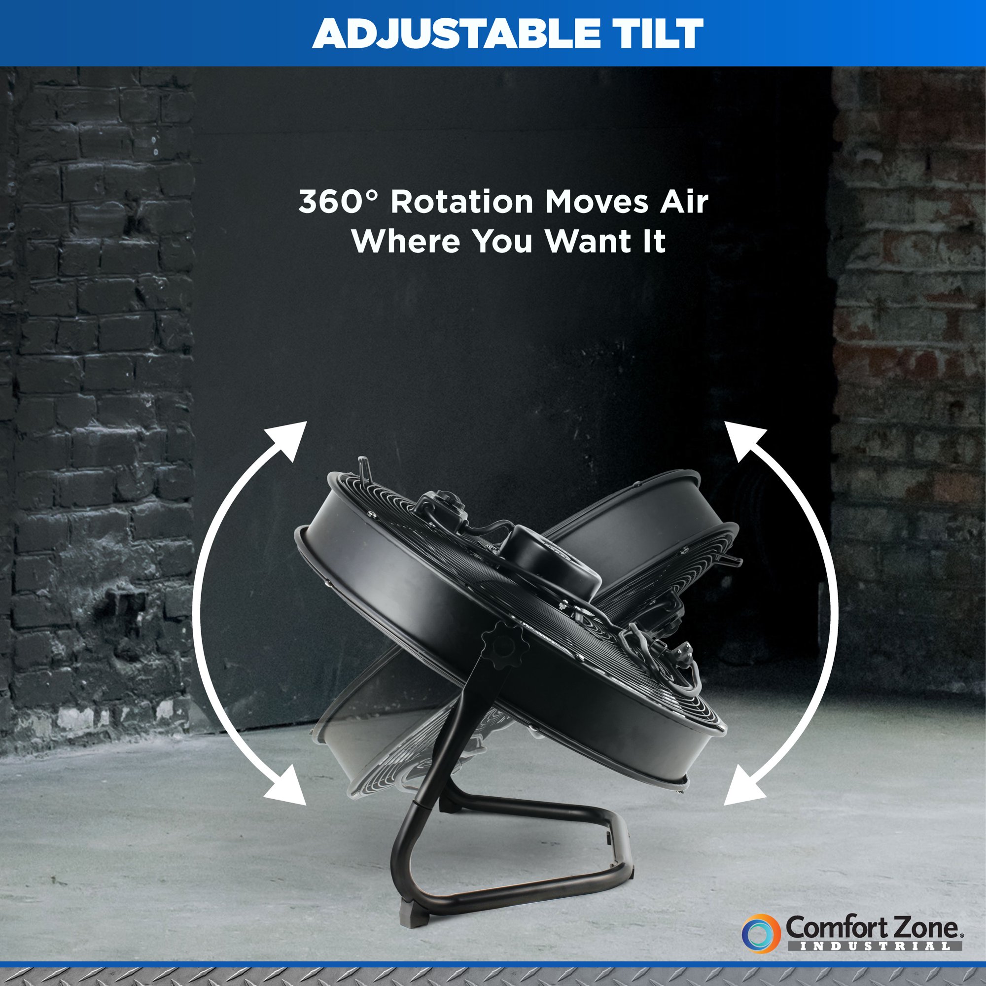 Comfort Zone 20 3-Speed High-Velocity Slim Industrial Drum Fan. 5-Aluminum Blades and Carry Handle. Black