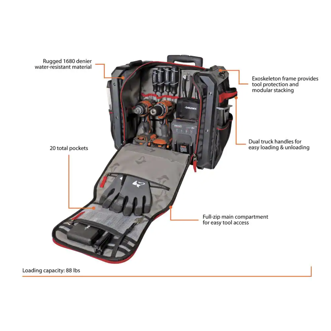 Husky 19 In. Stack Rolling Tool Tote