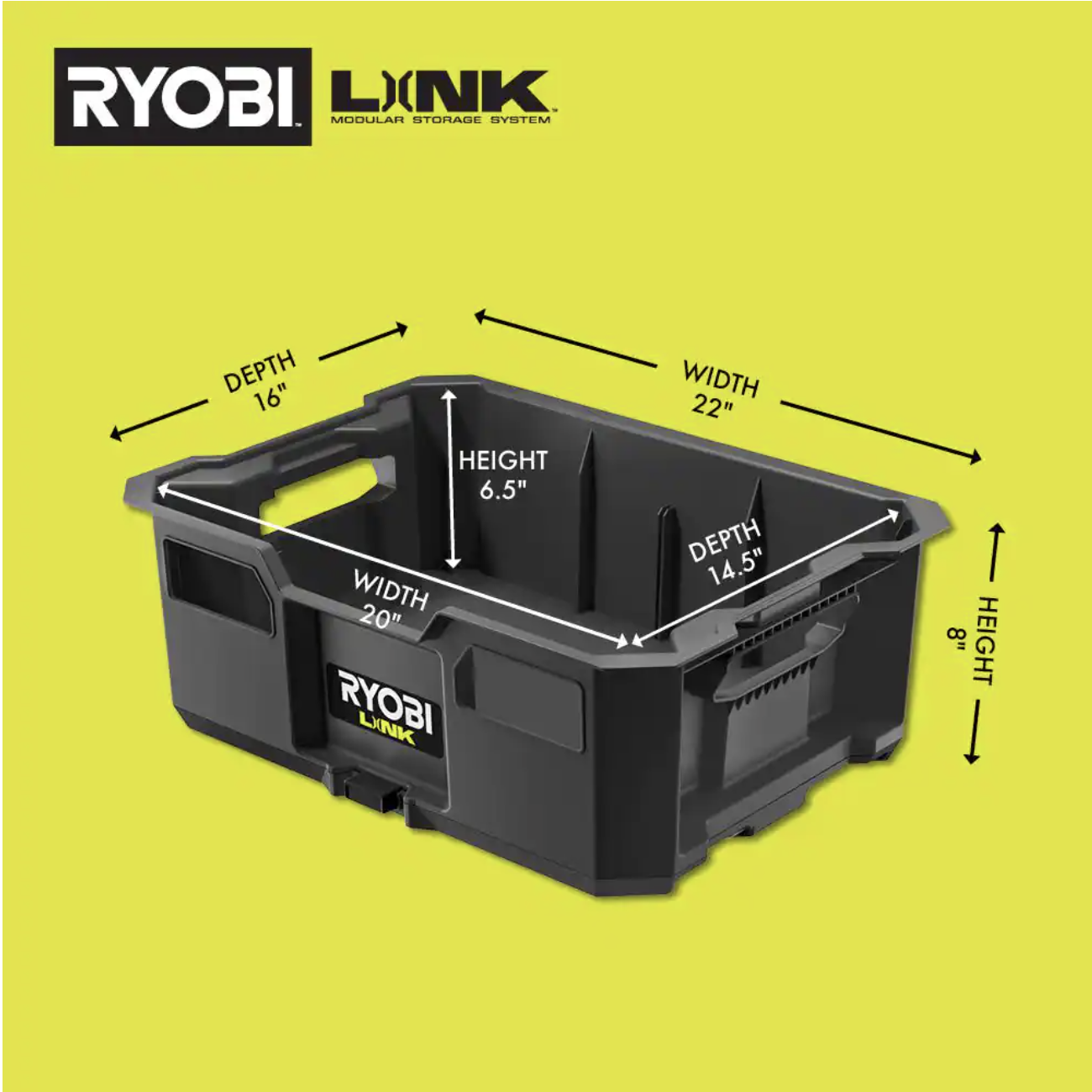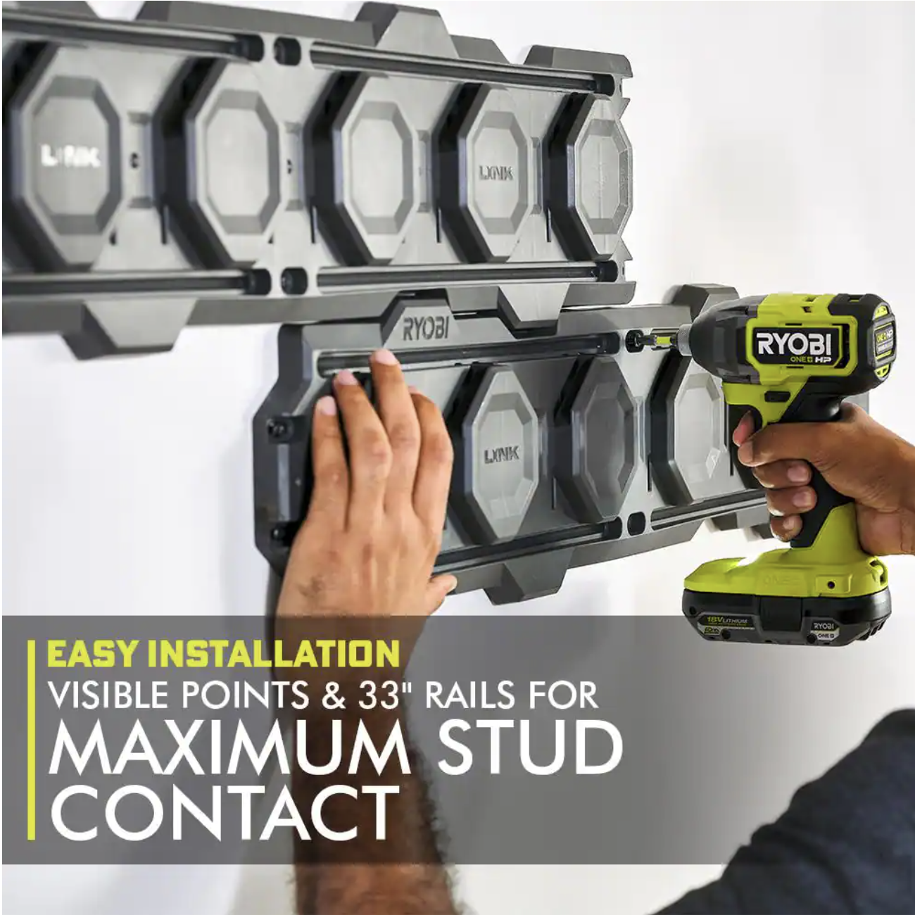 Ryobi LINK Tool Crate with LINK 7-Piece Wall Storage Kit and LINK Wall Rails (2-Pack)