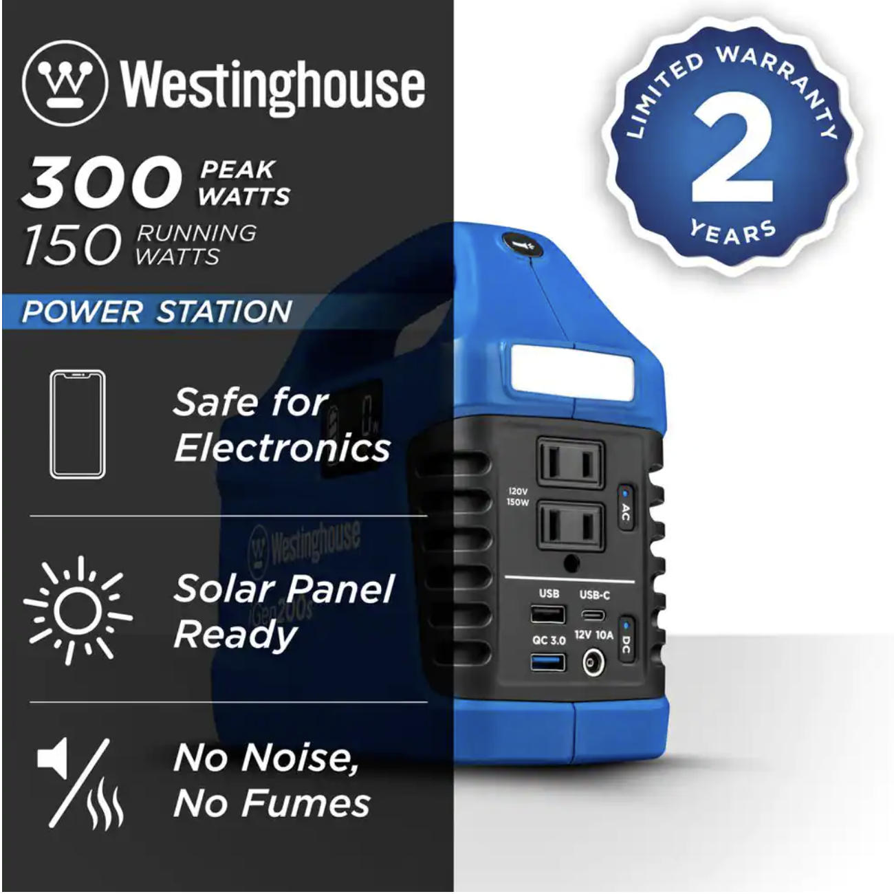 Westinghouse 150-Watt/300-Watt Lithium-Ion Portable Power Station with Power Inverter. LCD Display