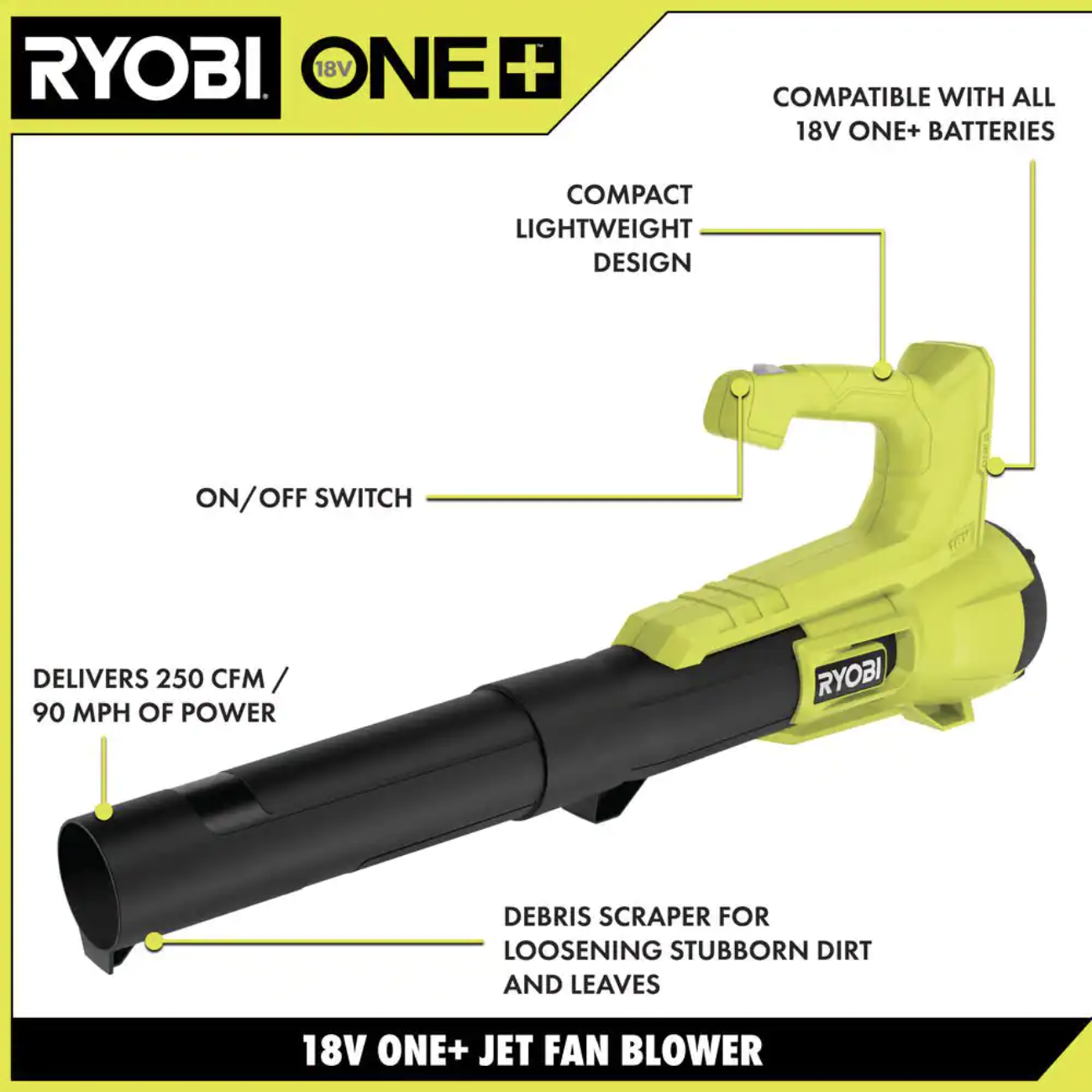 Ryobi ONE+ 18V 90 MPH 250 CFM Cordless Battery Leaf Blower with 4.0 Ah Battery and Charger