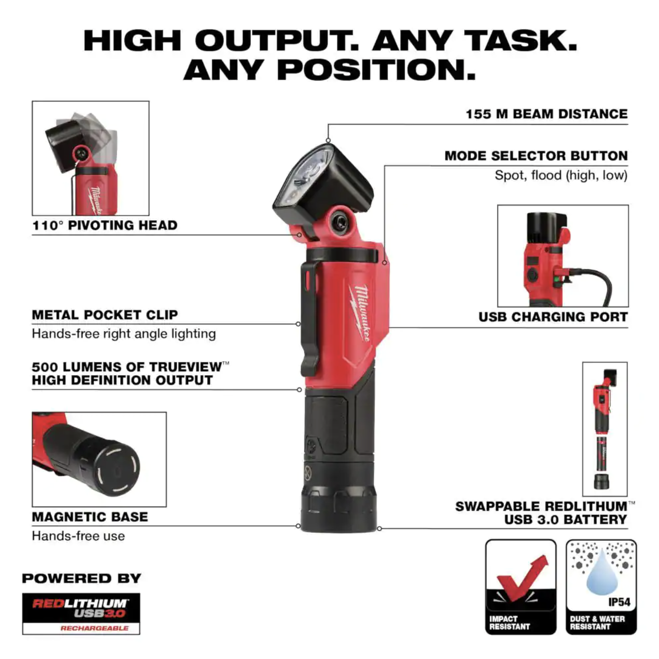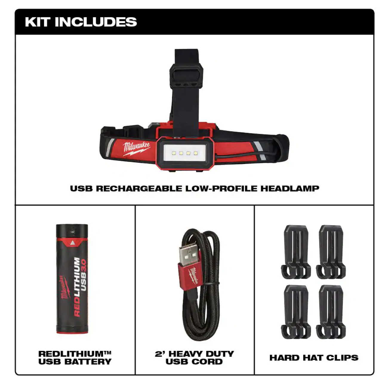 Milwaukee 600 Lumens LED REDLITHIUM USB Low-Profile Hard Hat Headlamp & 500 Lumens LED Pivoting REDLITHIUM USB Flashlight (2-Pack)