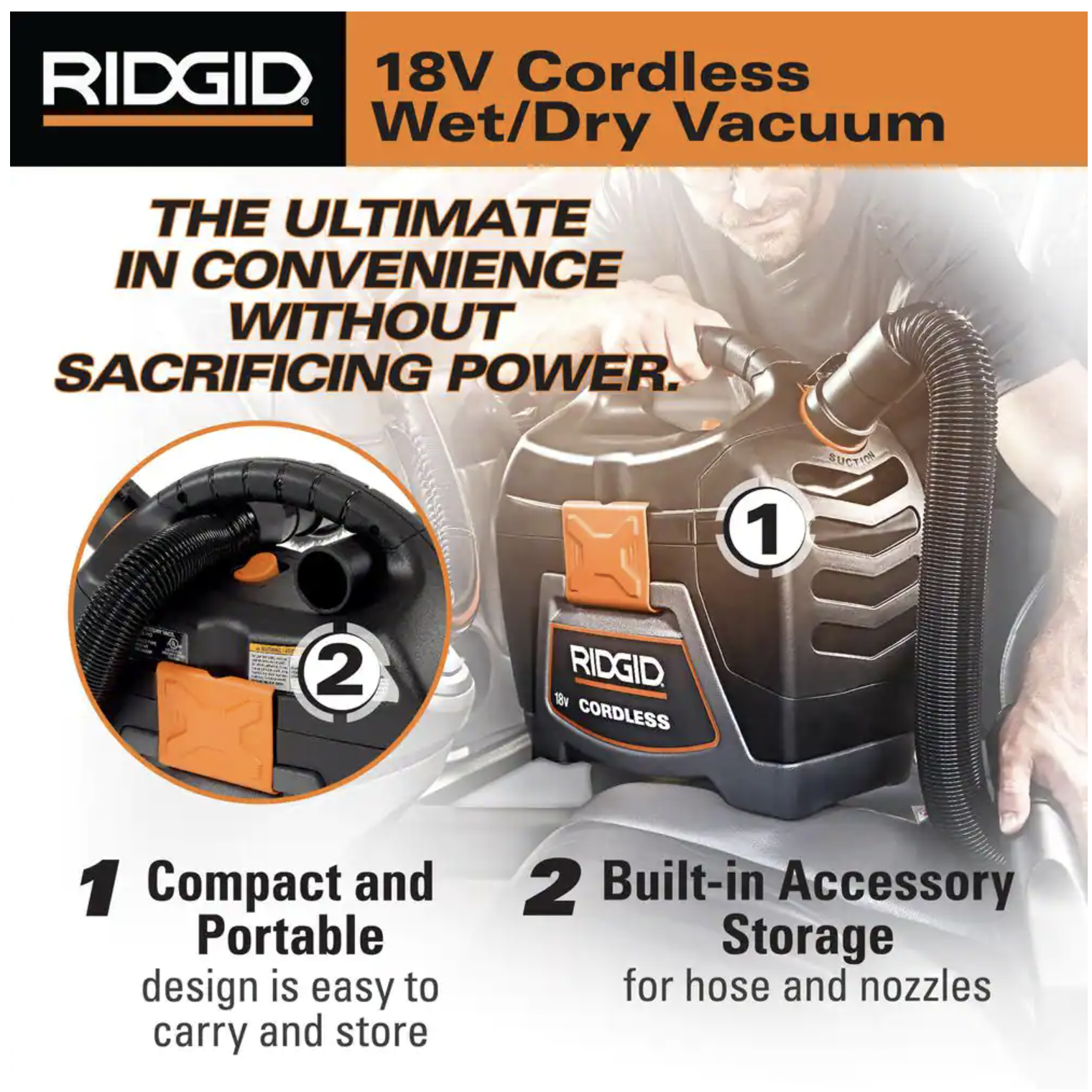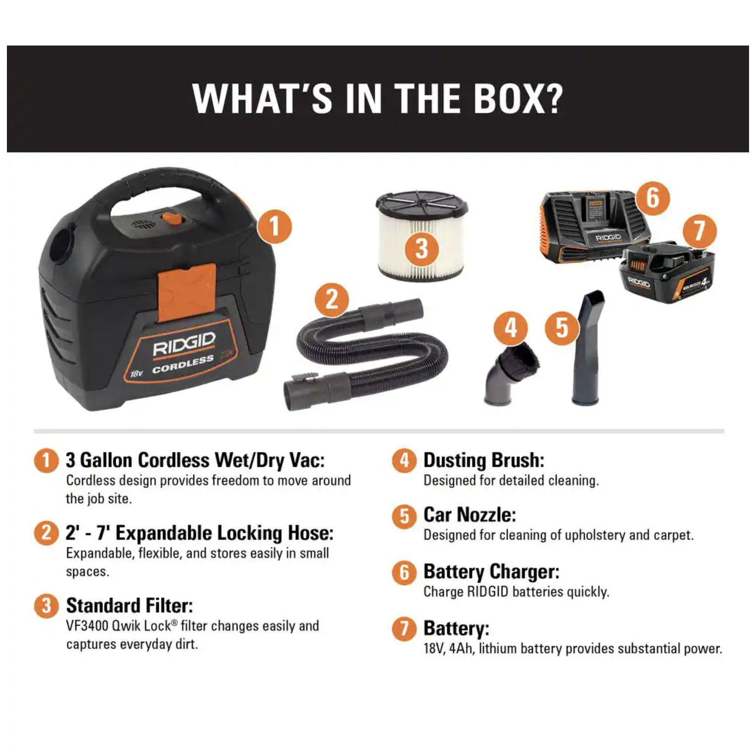Ridgid WD0319B 3-Gal. Cordless Handheld Wet/Dry Shop Vacuum with 18-Volt Lithium-Ion MAX Output 4.0 Ah Battery & Charger