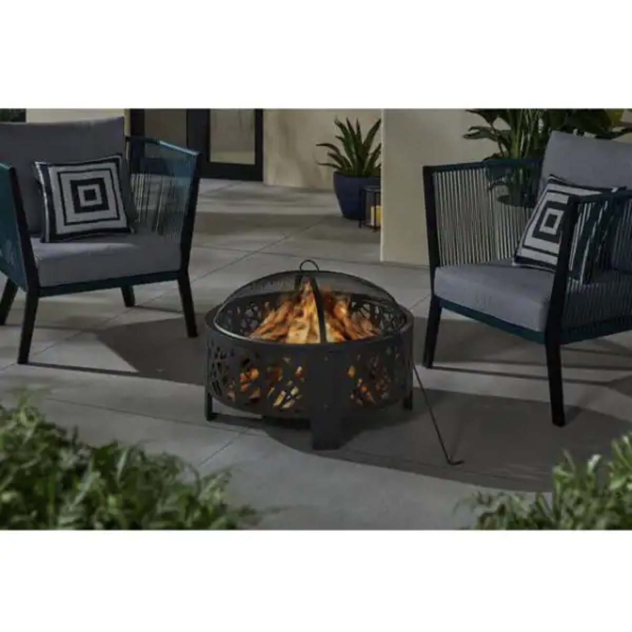 Hampton Bay 30 in. Outdoor Steel Wood Burning Black Fire Pit
