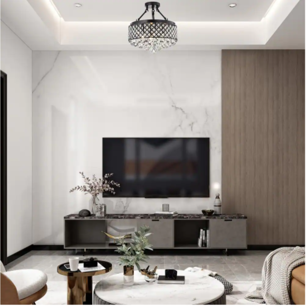 Edvivi Alyvia 4-Light Antique Black Glam Semi-Flush Mount Ceiling Light with Beaded Crystal Drum Shade