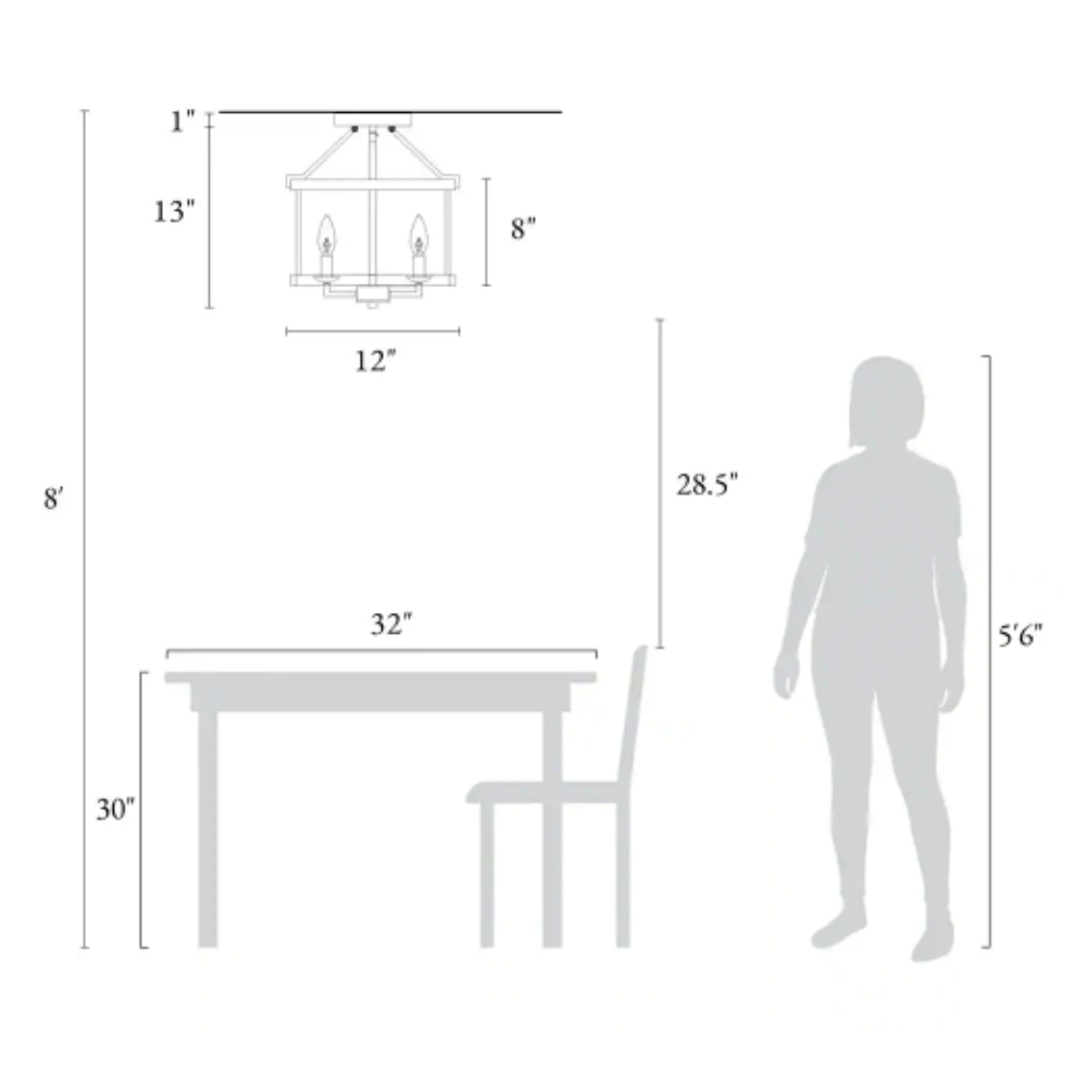 LNC Modern Farmhouse Brown Drum Semi Flush Mount Lighting. 3-Light Candlestick Ceiling Light Fixture for Bedroom Kitchen