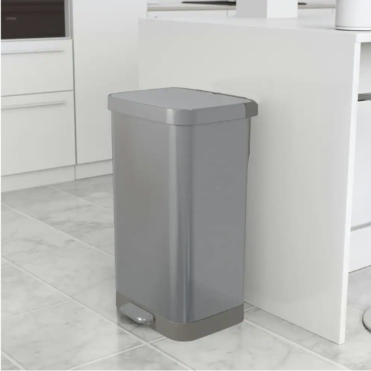 Glad 20 Gal. All Stainless Steel Step-On Large Metal Kitchen Trash Can with Clorox Odor Protection and Soft-Closing Lid