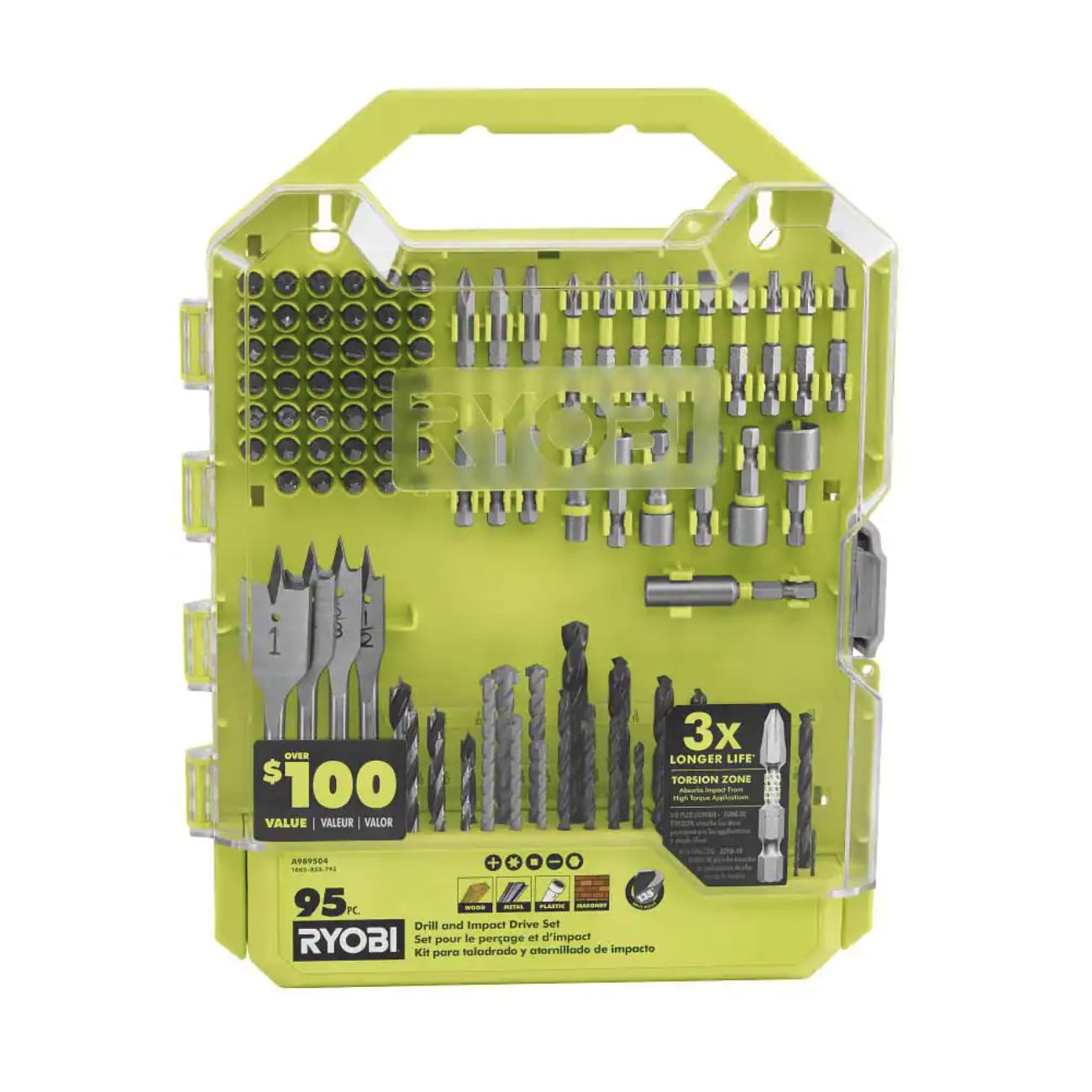 Ryobi One+ 18V Cordless 3/8 in. Drill/Driver Kit with 1.5 Ah Battery. Charger. and Drill and Drive Kit (95-Piece)