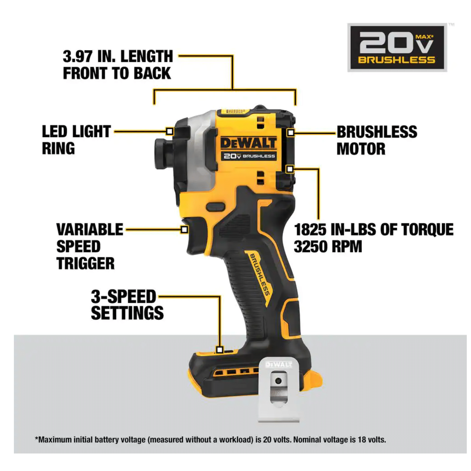 Dewalt 20v Max Lithium-Ion Brushless Cordless Combo Kit (2-Tool) with Two 1.7 Ahr Batteries. Charger & Bag (DCK254E2)