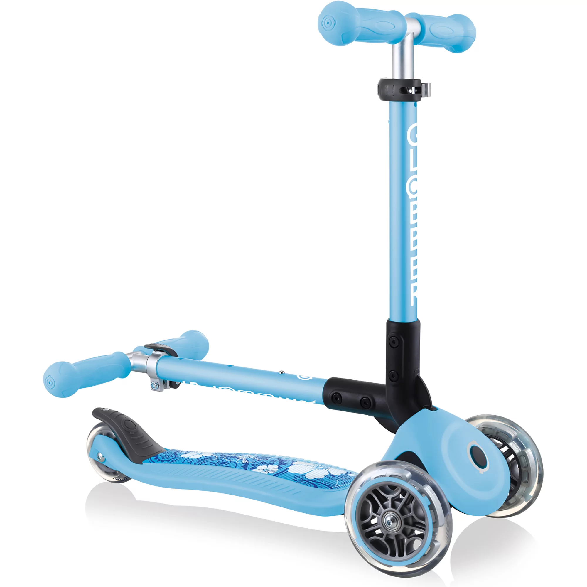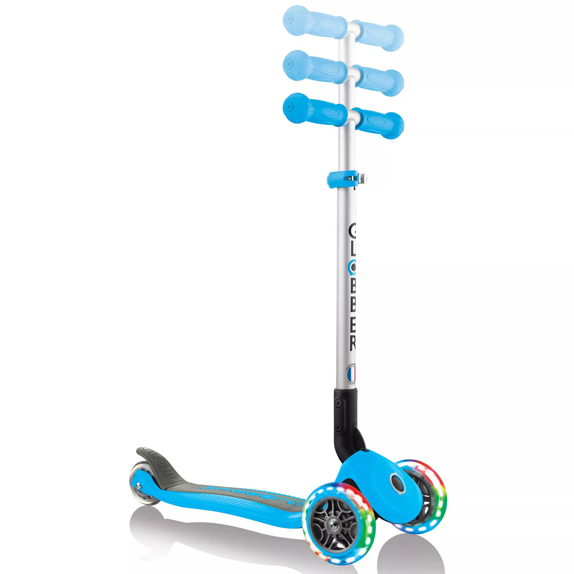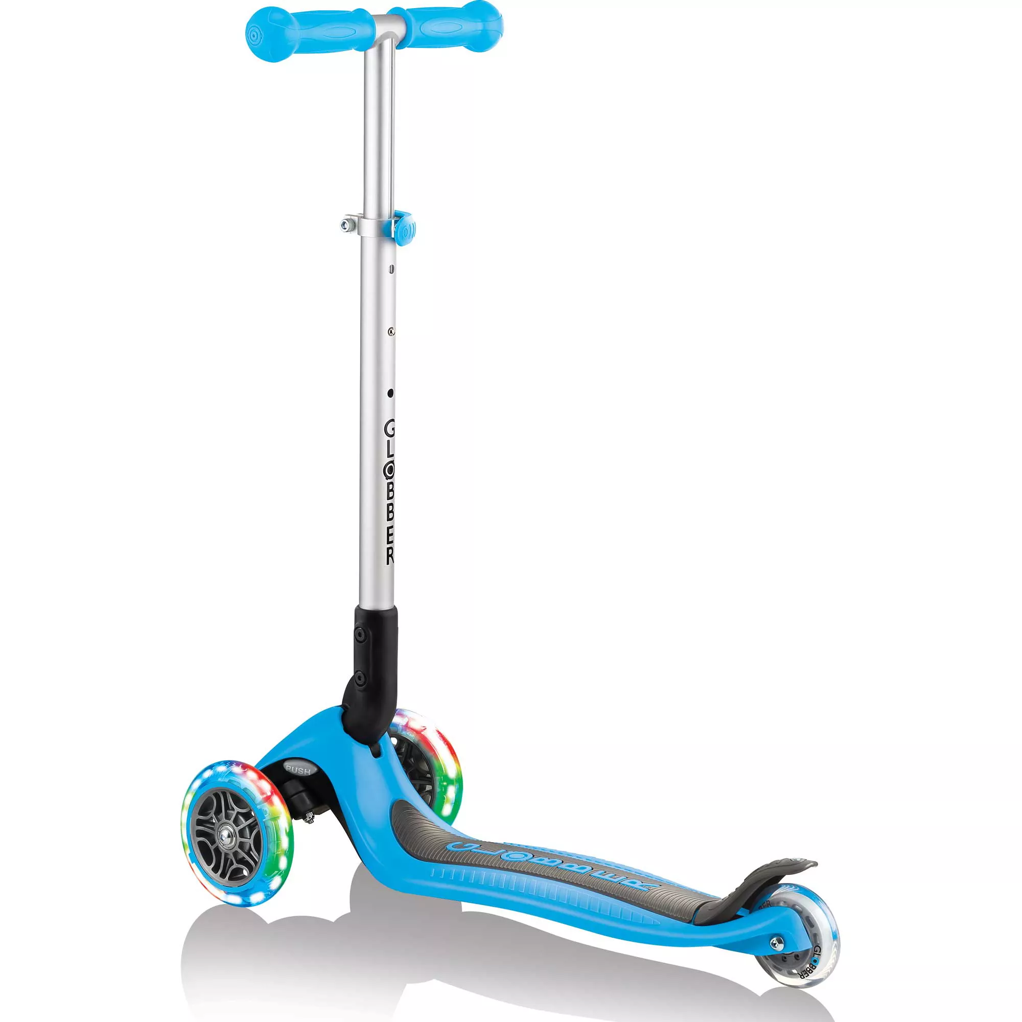 Globber Primo Foldable Light Up Scooter. Sky Blue